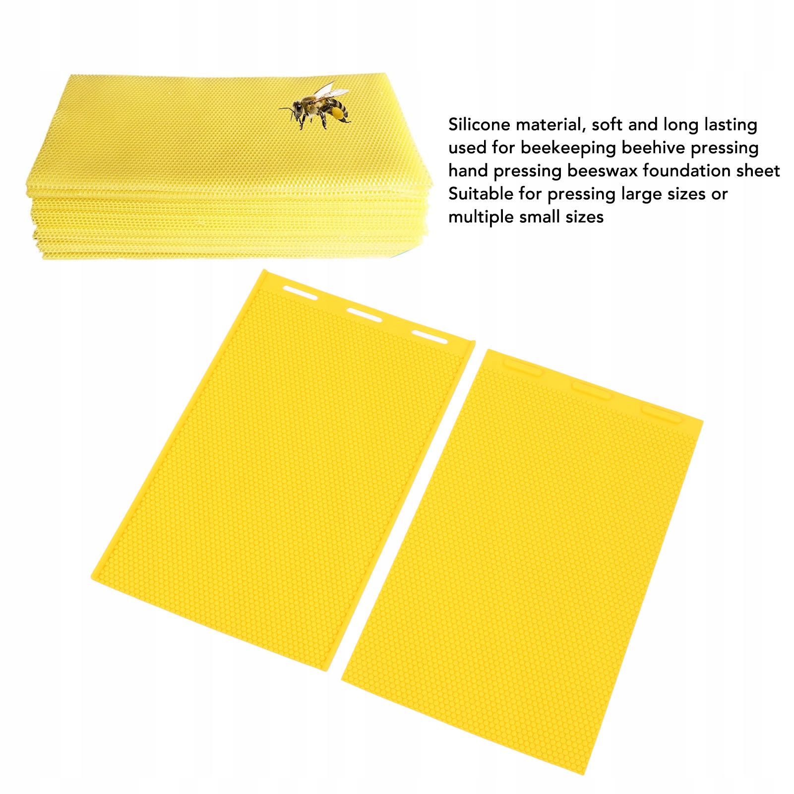 1. Силиконовая вещество: изготовленный из силикона высочайшего качества, лист давления пчелиного восхода является мягким, гибким и устойчивым и обнаруженным, обеспечивая безопасность и продолжительность жизни. Универсальное форматирование: каждый набор содержит два больших листа, 450x285 мм и 423x270 мм, идеально подходит для поворота больших форматов или многих меньших элементов, предлагая высокую гибкость приложений. Профессиональная производительность: благодаря сложным выступающим моделям, эти листы профессионально спроектированы не только для пчелиного восхода, но также подходят для привлечения моделей сотовых лиц на другие продукты. Комфортный и многоразовый: прост в скольжении и чистоте, лист недостатки пчелиного воска был разработан для спасения SOW. Предоставляет практические многократные функции для различных потребностей. Легкий и портативный: этот светлый и гибкий нажима для пчелиного воска, предназначенная для переносимости, может быть прикреплен для транспортировки и хранения. После применения избегайте размещения тяжелых предметов на них