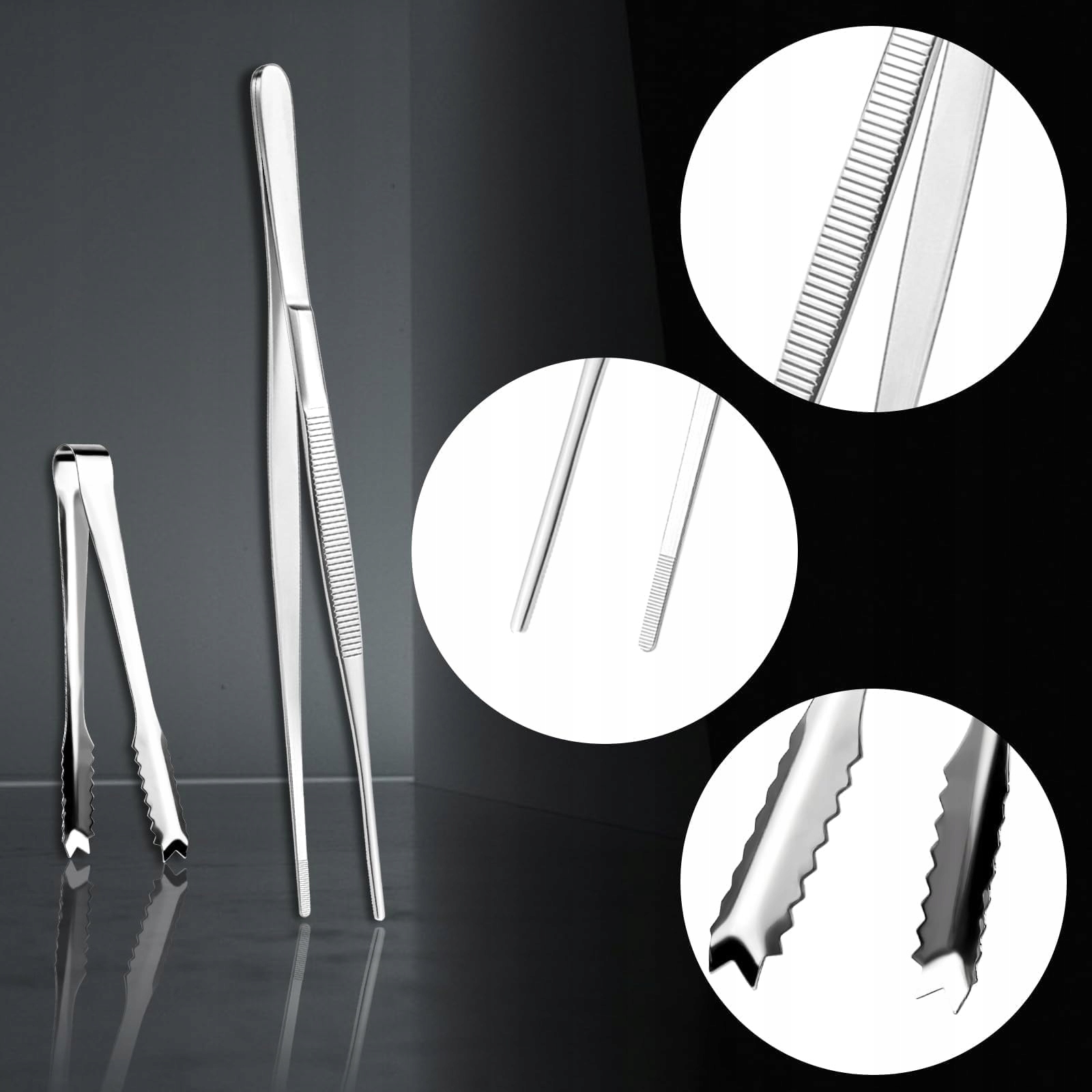 Высококачественный материал: пинцета изготовлен из высококачественной нержавеющей стали, он гладкий и без заусенцев, устойчивых к ржавчине и коррозии, прочной и простой в чистке. Их можно поместить прямо в посудомоечную машину, которая экономит время и гигиену.