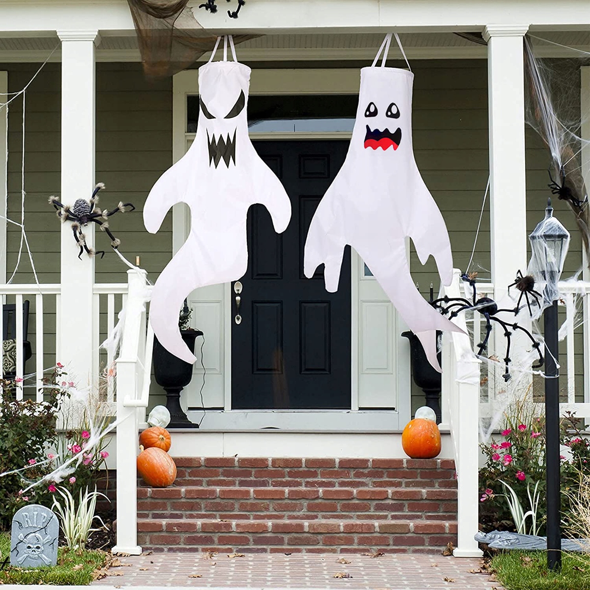 🎃 НАРУЖНЫЕ УКРАШЕНИЯ ДЛЯ ХЭЛЛОУИНА: Попрощайтесь со сложной сборкой! Наши ветроуказатели Ghost имеют удобное верхнее отверстие, поэтому их можно легко повесить всего за 3 секунды. Их также можно повесить на крыльце, патио или столбе с помощью веревок, цепей и т. д.