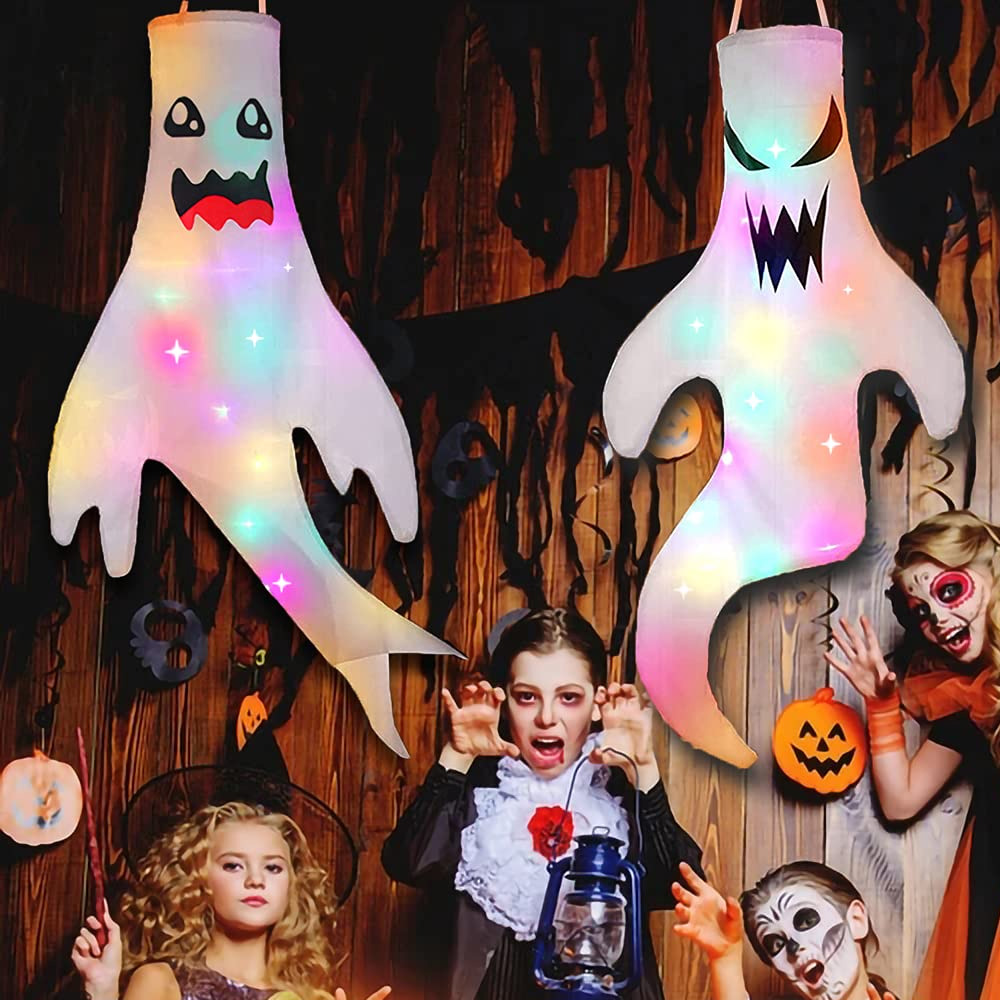 🎃 УЛЬТРАРЕАЛИСТИЧЕНО: Эти Хэллоуинские призраки (2 штуки, 50х130 см) , Они сделаны со светодиодной лампой и имеют реалистичную трехмерную форму! Их легко повесить, призраки Джонами просто незаменимы на каждой вечеринке!