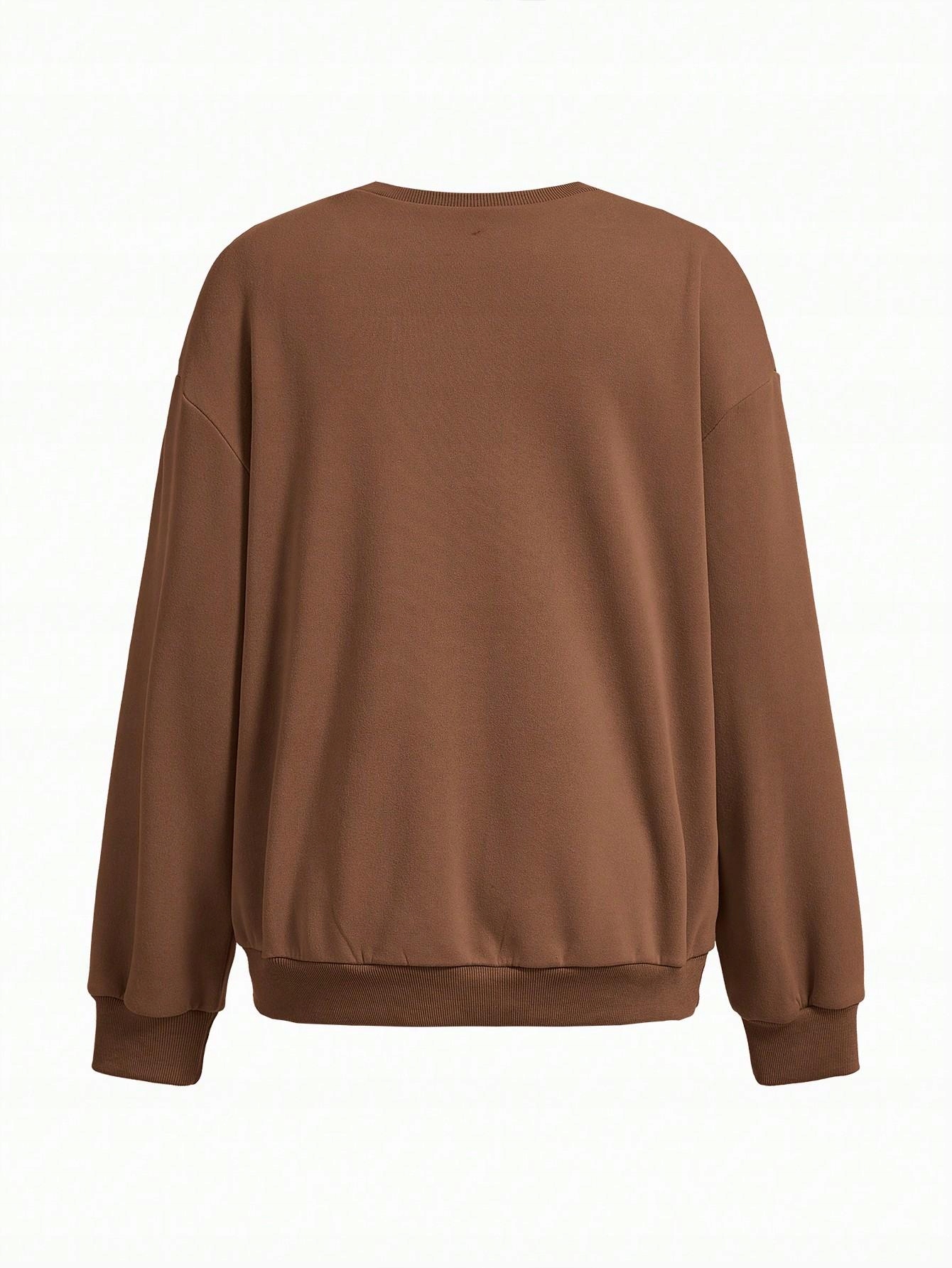 2 шт. СВИТШОТ ДЛЯ МАТЕРИАЛОВ ФИОЛЕТОВО-КОРИЧНЕВЫЙ КРУГЛЫЙ ВЫРЕЗ С ДЛИННЫМ РУКАВОМ SHEIN 36