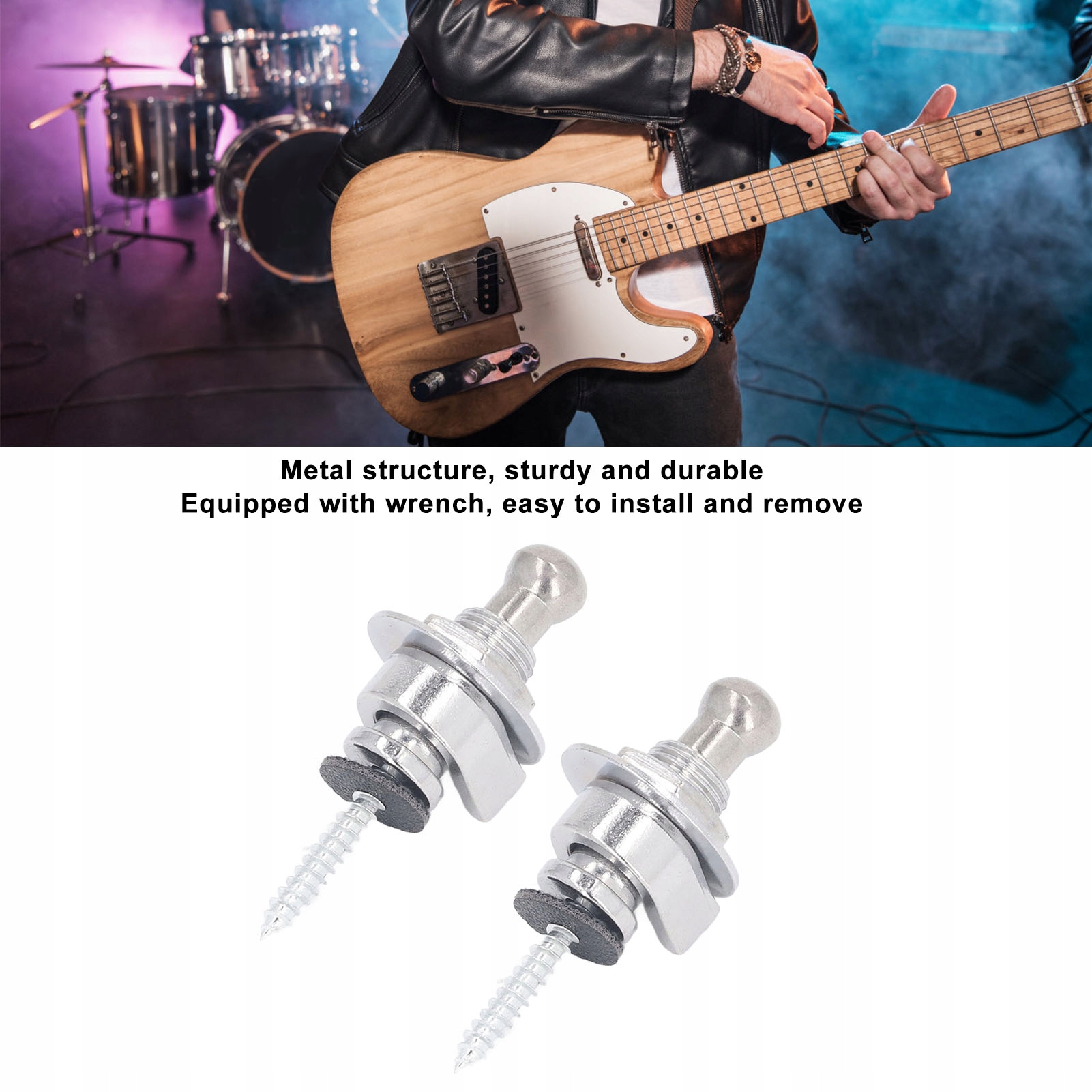 5. Широкое использование: этот металлический замок ремешка подходит для большинства электрических и акустических гитар и окунь и может напрямую заменить старые или поврежденные.