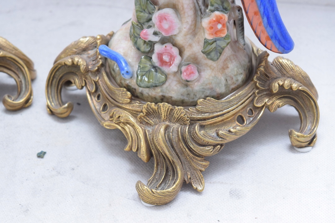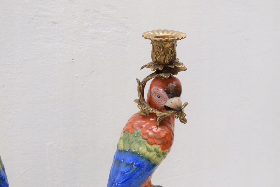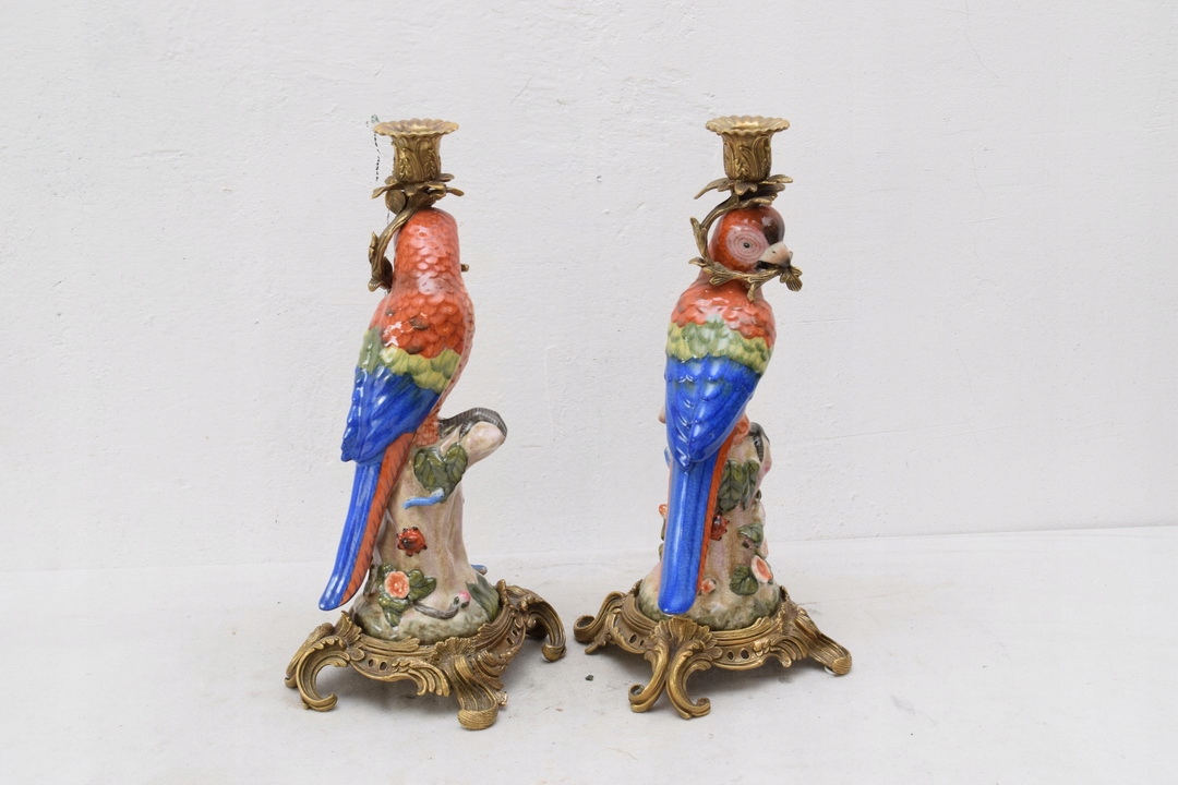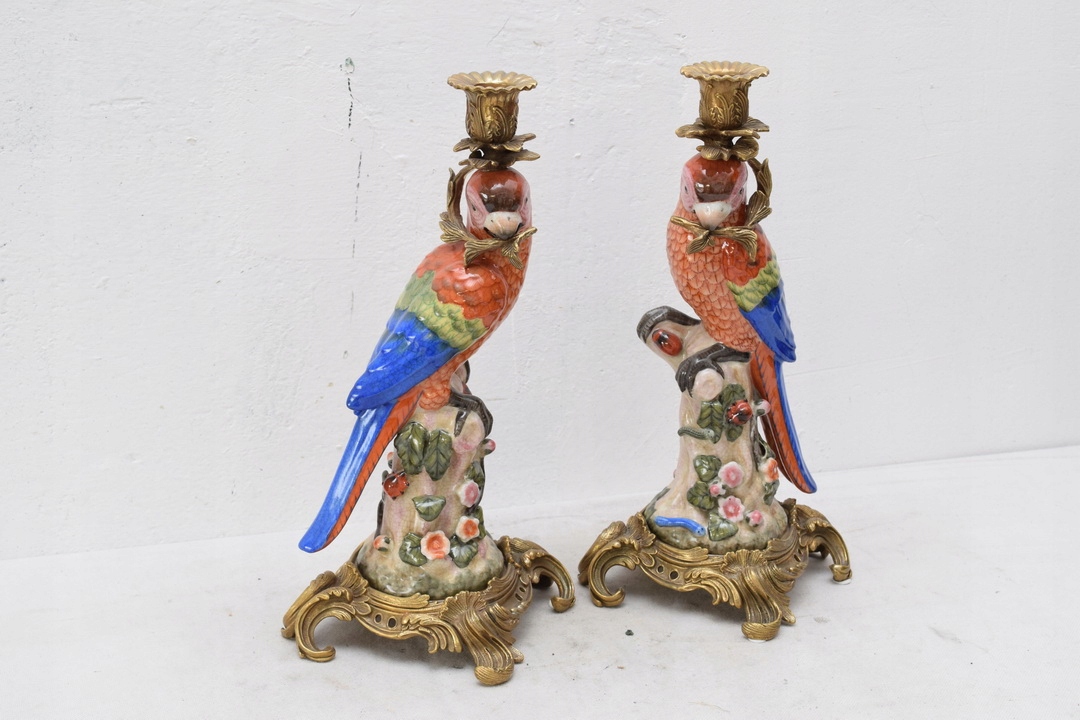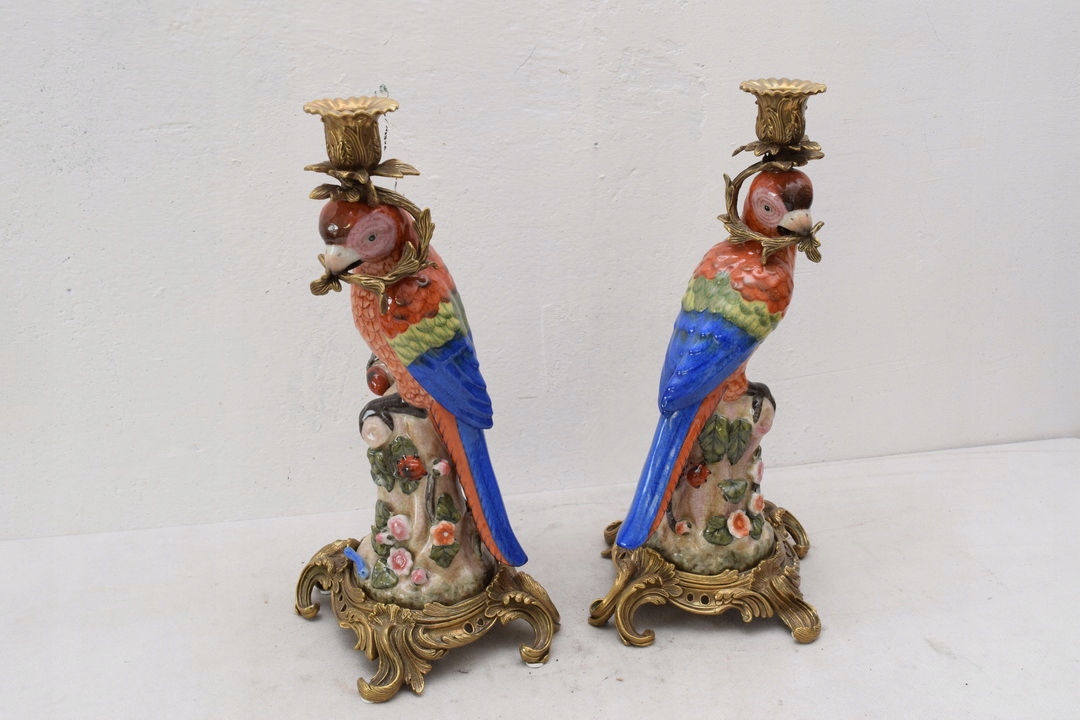 Здравствуйте, сегодня хочу предложить Вам красивые подсвечники в виде попугаев из фарфора, а подсвечник и украшения выполнены из бронзы.