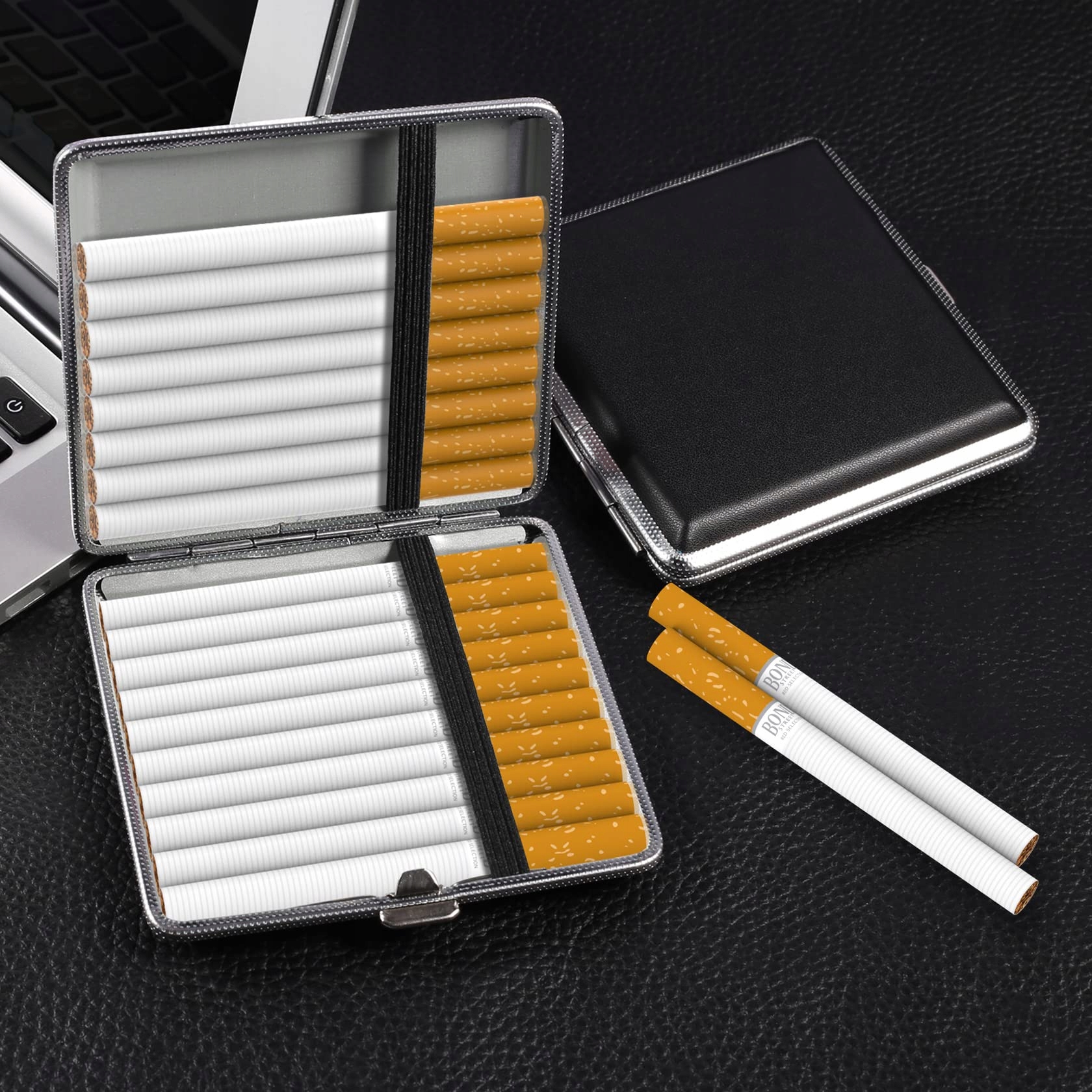 💎💎【С застежкой】С обеих сторон портсигара имеются резиновые ленты, которые эффективно предотвращают падение сигарет, а портсигар вмещает 20 сигарет. Хранение по 10 сигарет с каждой стороны может эффективно предотвратить перегрузку сигарет в портсигаре и обеспечить ежедневное использование.