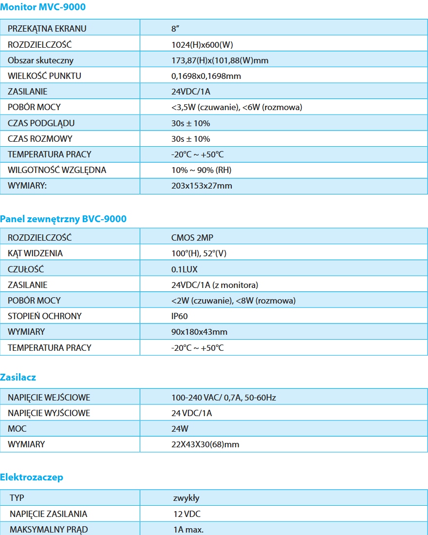 • MVC-9000 monitor, 8 '', resolution 1024x600