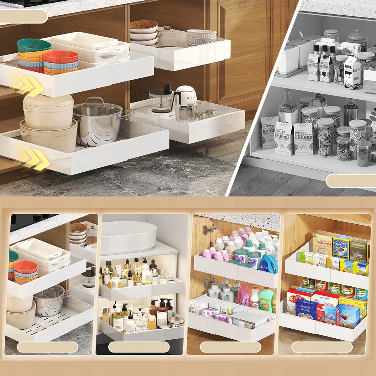 2 РЕГУЛИРУЕМЫХ ЯЩИКА Телескопическая выдвижная полка для кухонного шкафа