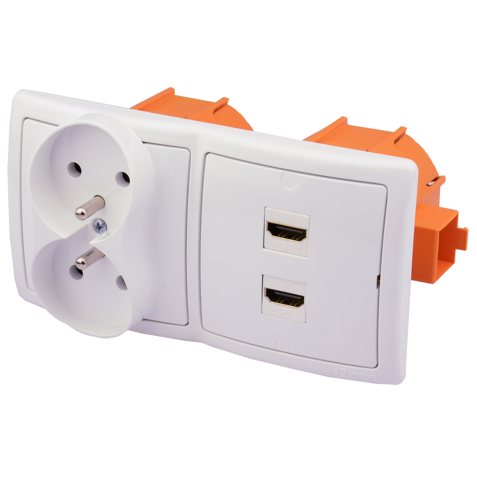 Качественные HDMI-розетки и розетки в коробке скрытого монтажа позволят спрятать каждый кабель в стене, придав интерьеру элегантный вид. Белый корпус изготовлен из прочного и долговечного материала.