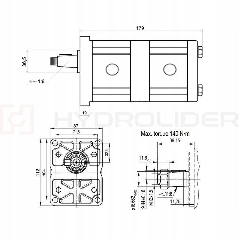 2-СЕКЦИОННЫЙ ГИДРАВЛИЧЕСКИЙ НАСОС GR2 ПРАВЫЙ, 16/14 см3/об, производительность 24/21 л/мин.