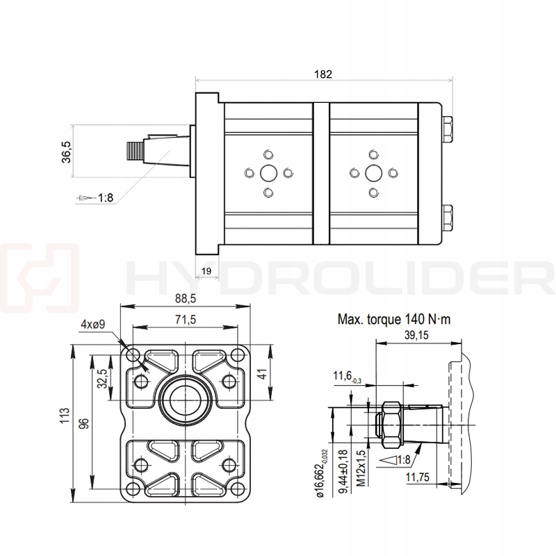 2-СЕКЦИОННЫЙ ГИДРАВЛИЧЕСКИЙ НАСОС GR2 ПРАВЫЙ, 16/16 см3/об, производительность: 24/24 л/мин.