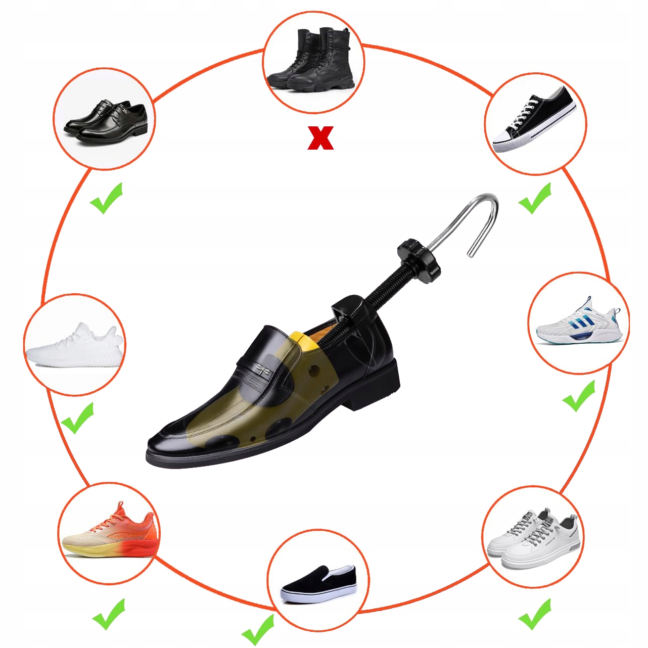 Подрамники для спортивной обуви подходят для большинства видов обуви, таких как кожаная обувь, спортивная обувь, сандалии, балетки, повседневная обувь, парусиновая обувь, кроссовки и т. д. Обувь разных стилей и материалов может обладать эффектом растяжения.