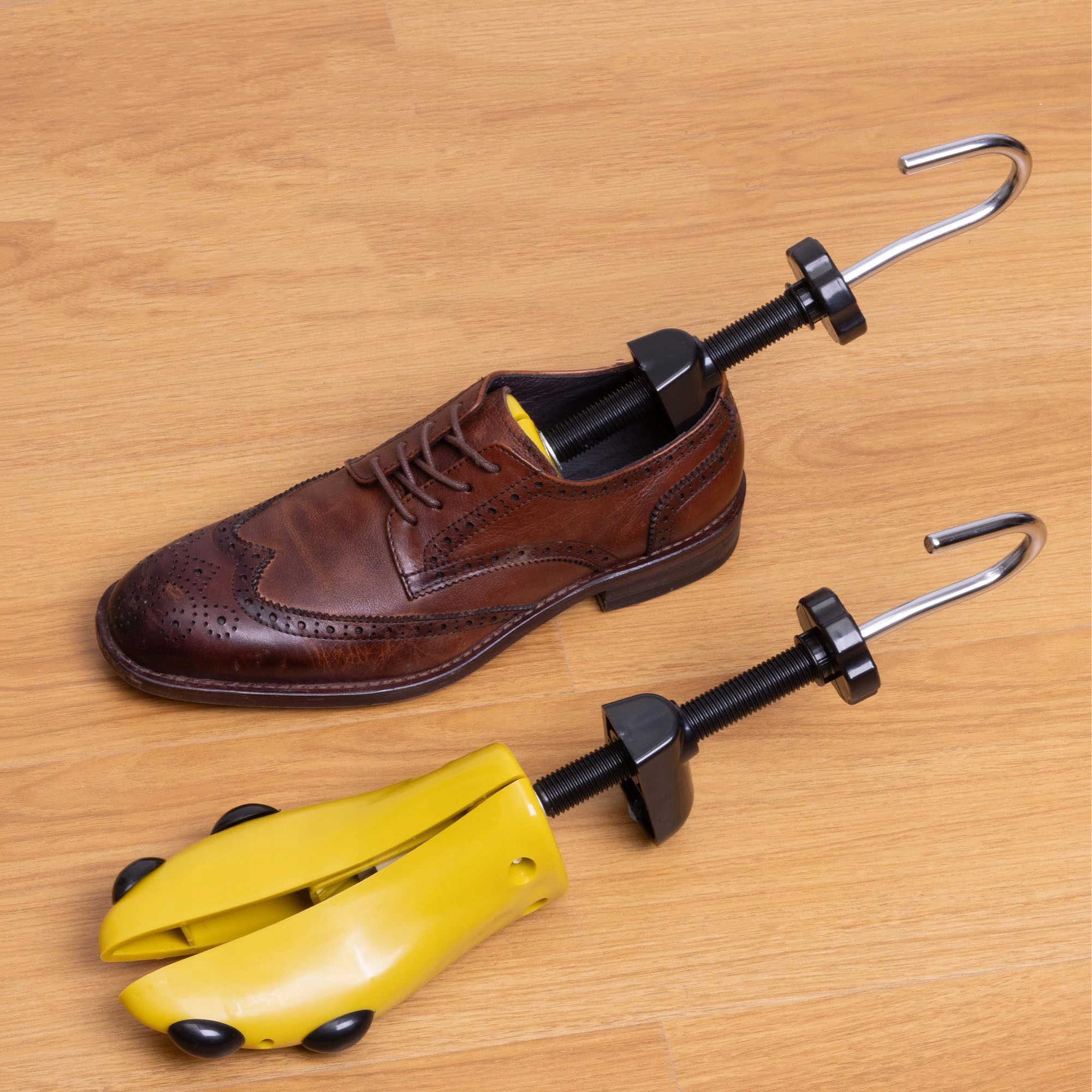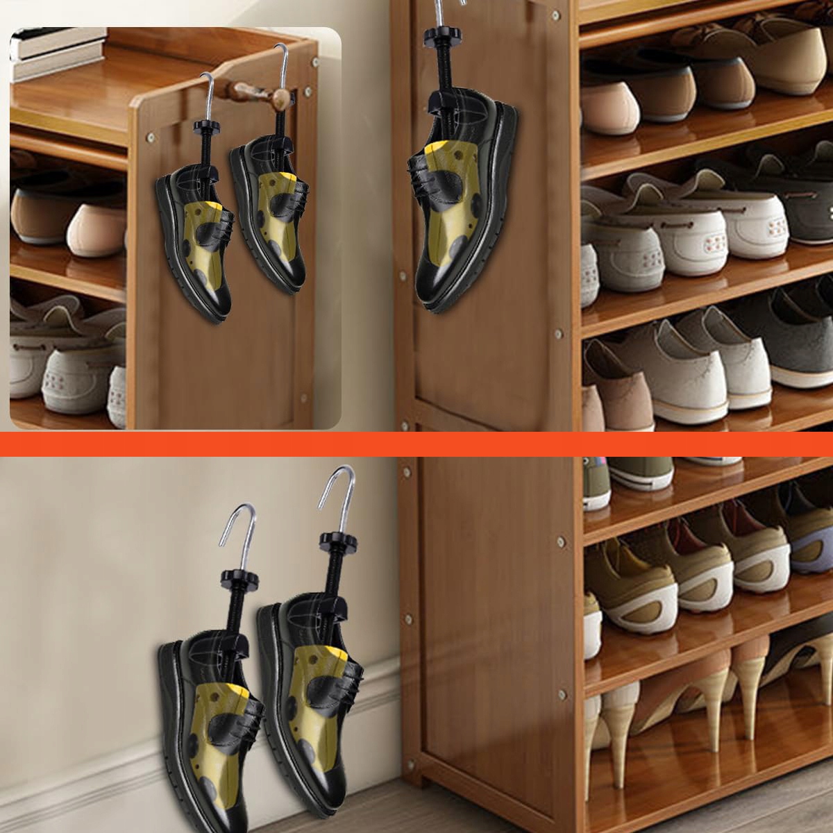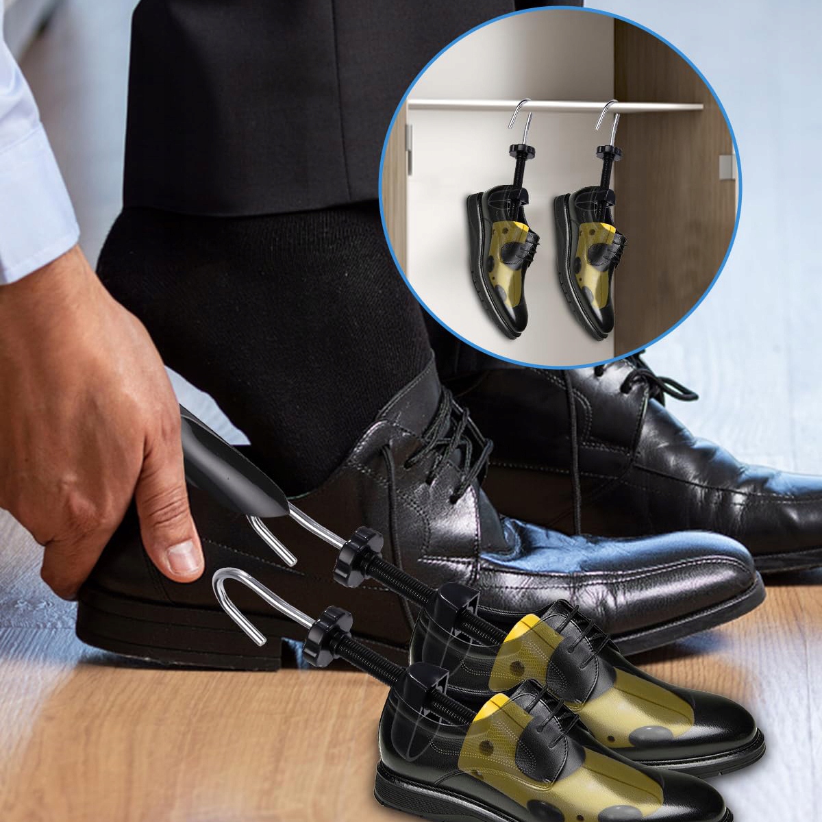 Подставки для обуви изготовлены из высококачественного пластика и прочной нержавеющей стали, что обеспечивает прочность и долговечность изделия. Мужские колодки для обуви имеют форму ступни, и их можно достать в любом месте обуви. Подставки для обуви оснащены металлическими крючками, что позволяет хранить их любым способом, не занимая при этом слишком много места.