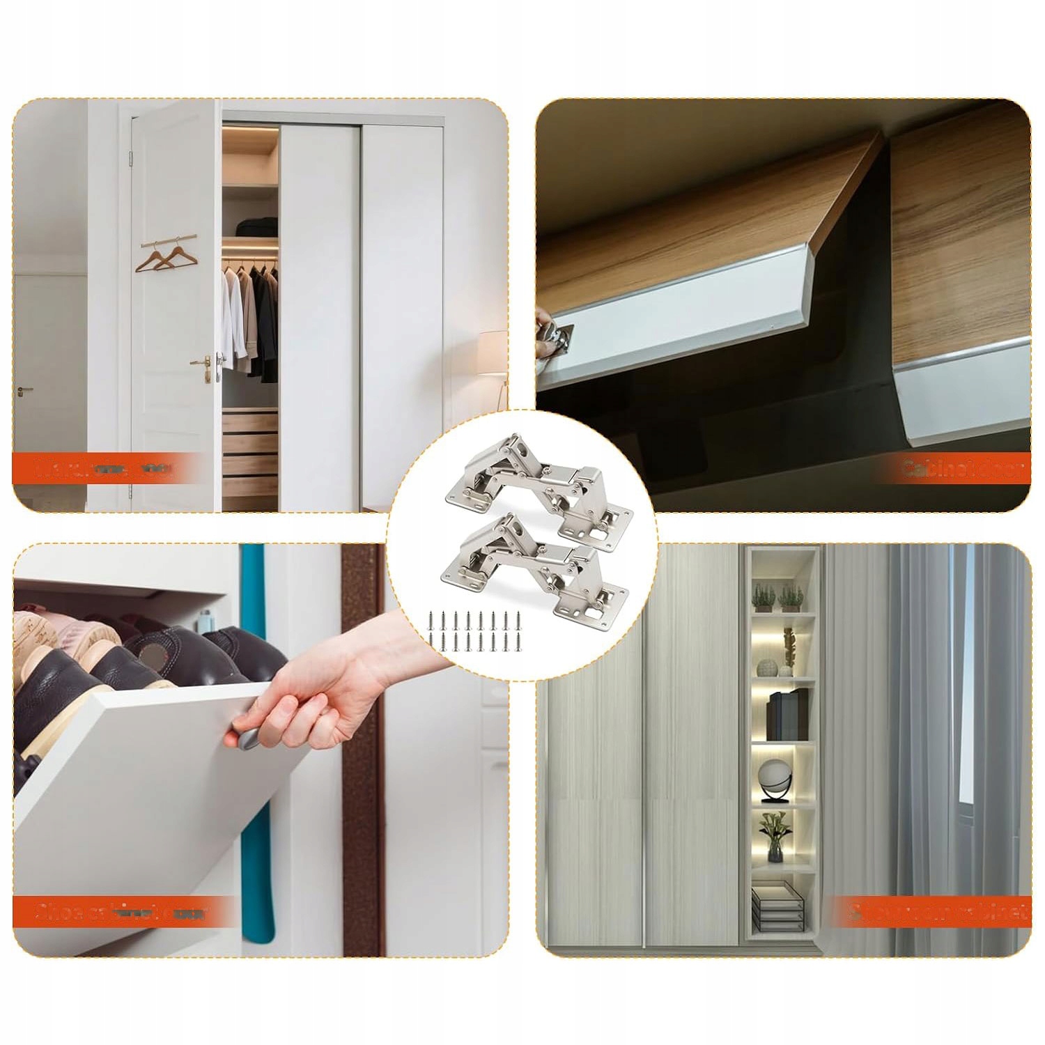 Универсальный дизайн для различное применение: идеально подходит для угловых шкафов, шкафов, дверей вращающиеся двери, откидные двери или запирающиеся двери. Этот шарнир имеет угол 170°. является идеальной заменой накладных петель, повышение функциональности в каждой комнате.