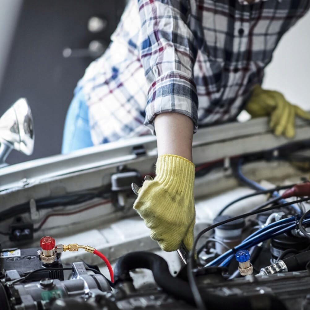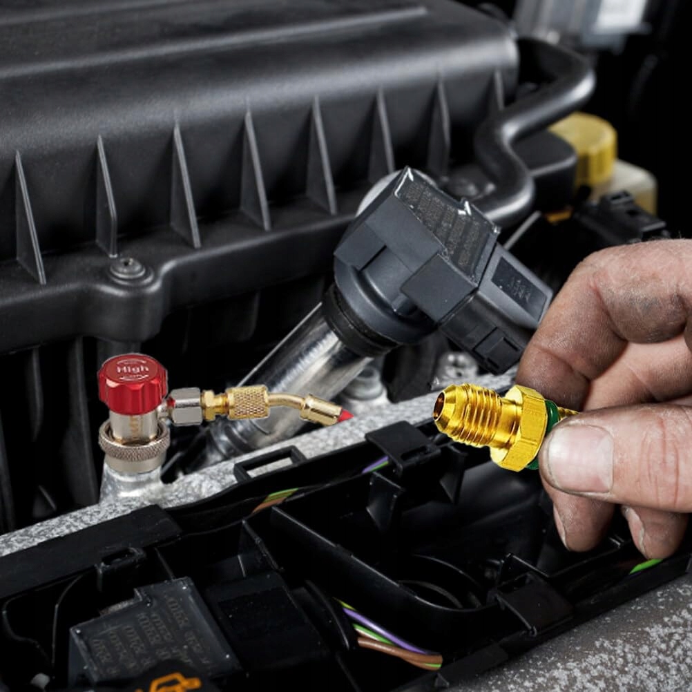 💡💡dapters для резервуаров: 1/2 дюйма самка (в сочетании со змеей) x 1/4 "мужская вспышка (соединение с сцеплением), разговор с набором датчика давления R12 на линии R134A.