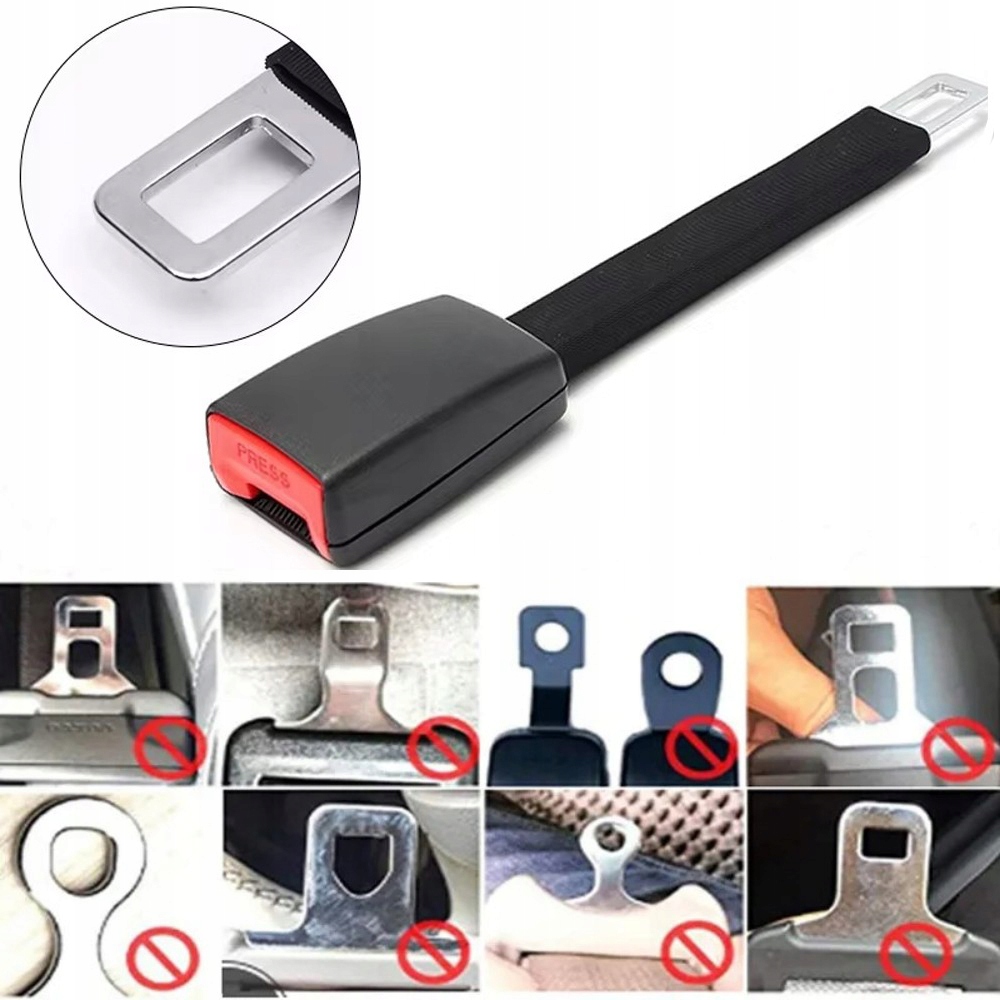 Оснащен прочным зажимом, который подходит к стандартной пряжке ремня безопасности, и безопасным запирающим механизмом, удерживающим удлинитель на месте. Отстегнуть легко, нажав красную кнопку, как обычный ремень безопасности.