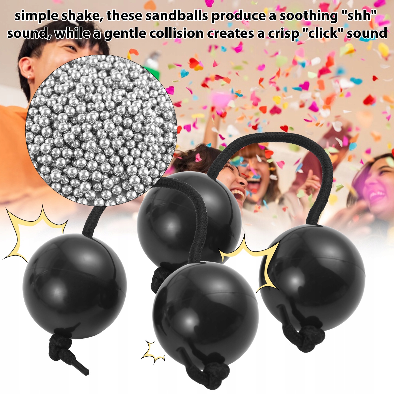 4. 【Легко играть и универсально】: при встряхивании эти песочные шарики издают успокаивающий звук «шшш», а легкое столкновение создает отчетливый звук «щелчка», открывая широкий спектр музыкальных возможностей. Подходит для различных мероприятий, таких как КТВ, свадьбы, дни рождения, концерты, музыкальные занятия и уроки игры на инструментах.