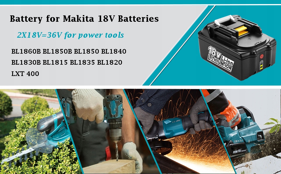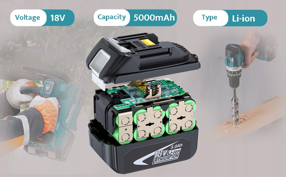 ✅ Работает как надежная замена BL1830B, BL1840B, BL1850B, BL1860B и поддерживает широкий спектр аккумуляторных инструментов 18 В, включая дрели, пилы, ударные шуруповерты и триммеры.