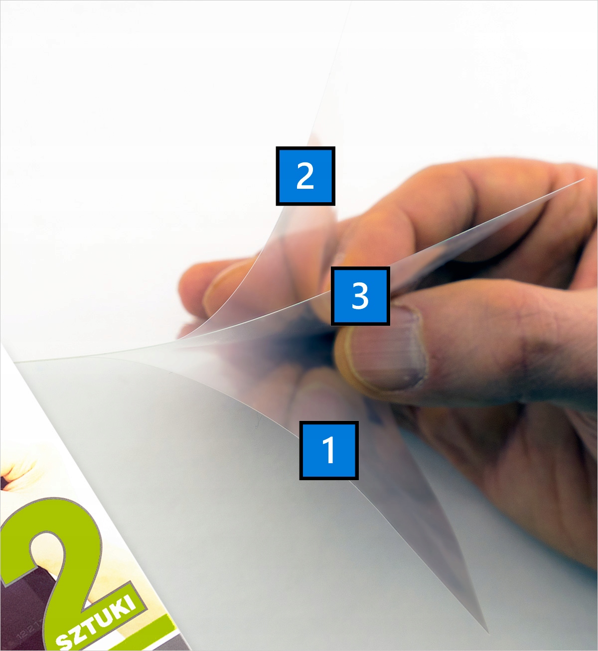 3️⃣ Третий слой — это собственно фольга (3), то есть та, которую мы оставляем на экране дисплея. Он изготовлен из очень прочного поликарбоната, благодаря чему экранполностью защищен от царапин.