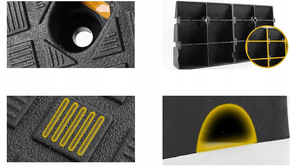 - Каждая рампа оснащена глянцевыми светоотражающими наклейками, которые четко отражают свет в ночное время или в условиях плохой освещенности, значительно улучшая видимость рампы; они особенно подходят для использования на открытых тротуарах, подъездах и других подобных местах, снижая риск несчастных случаев в ночное время.