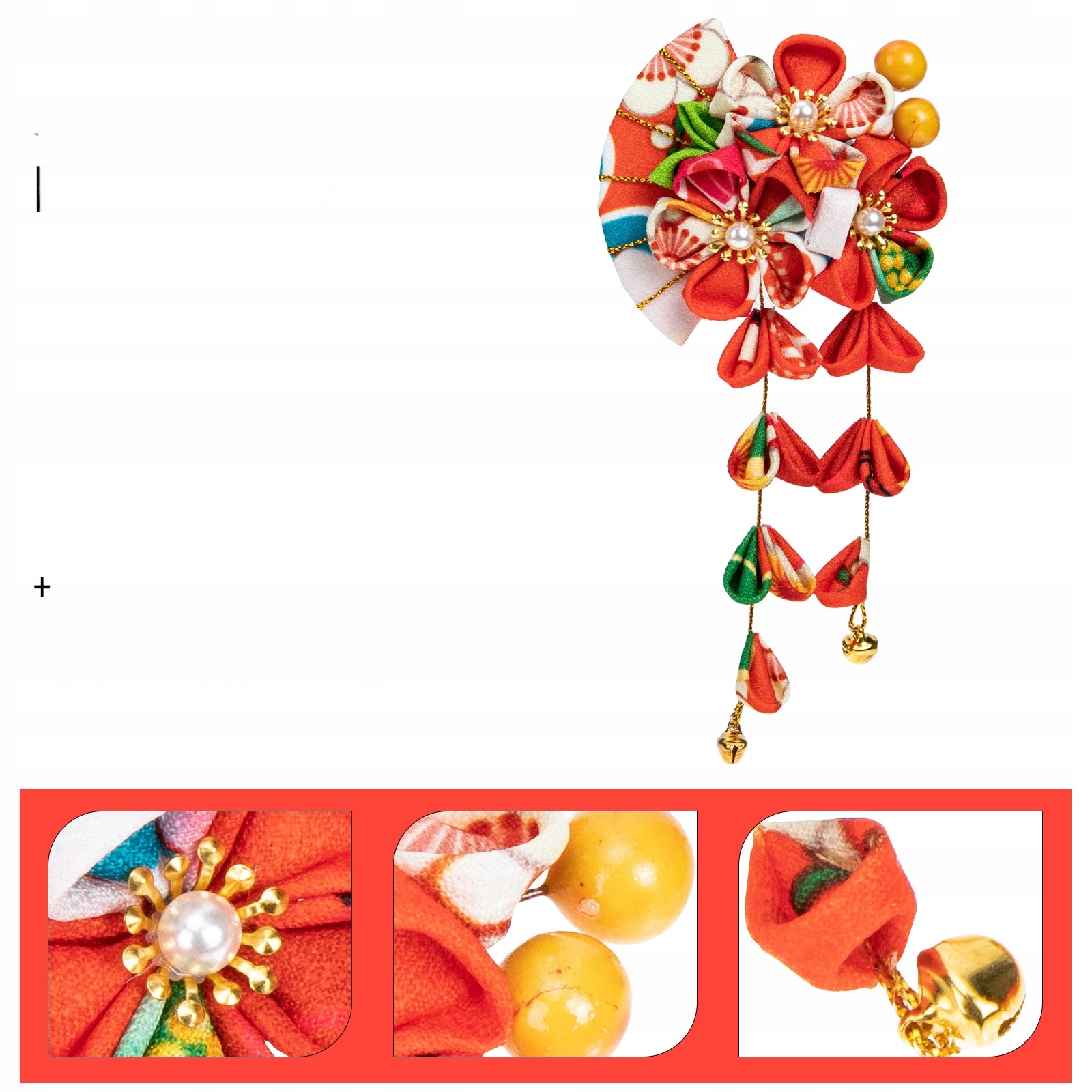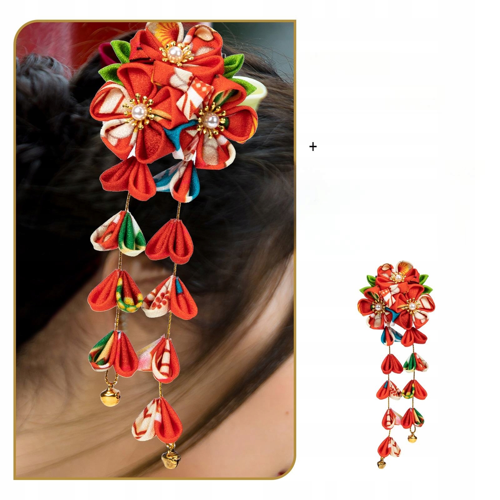 2 ШТ. КРАСНАЯ ЯПОНСКАЯ ШАПКА С ЦВЕТАМИ И КИСТОЧКАМИ ЭЛЕГАНТНЫЕ АКСЕССУАРЫ ДЛЯ ВОЛОС ВЕЕР