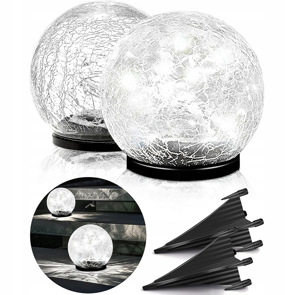 2 шт. СОЛНЕЧНЫЕ ЛАМПЫ С КРЕКЛЕ САДОВОЕ ОСВЕЩЕНИЕ 12 СМ, 40 СВЕТОДИОДОВ, ВОДОНЕПРОНИЦАЕМЫЕ