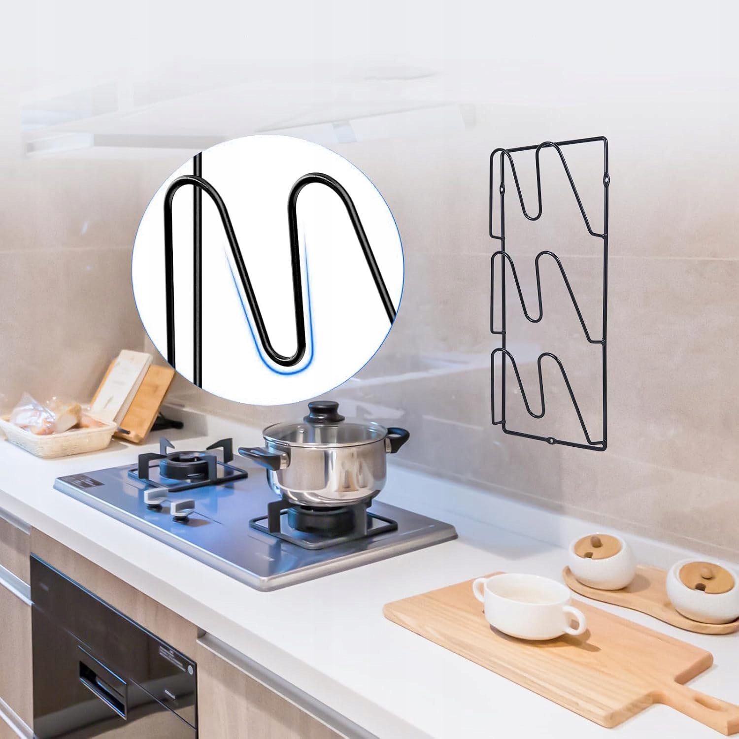 В гнезде держателя используется U-образная форма, которая может удерживать различные виды накладок на ручки, надежно удерживает крышку, предотвращая ее падение, и является хорошим помощником на кухне.