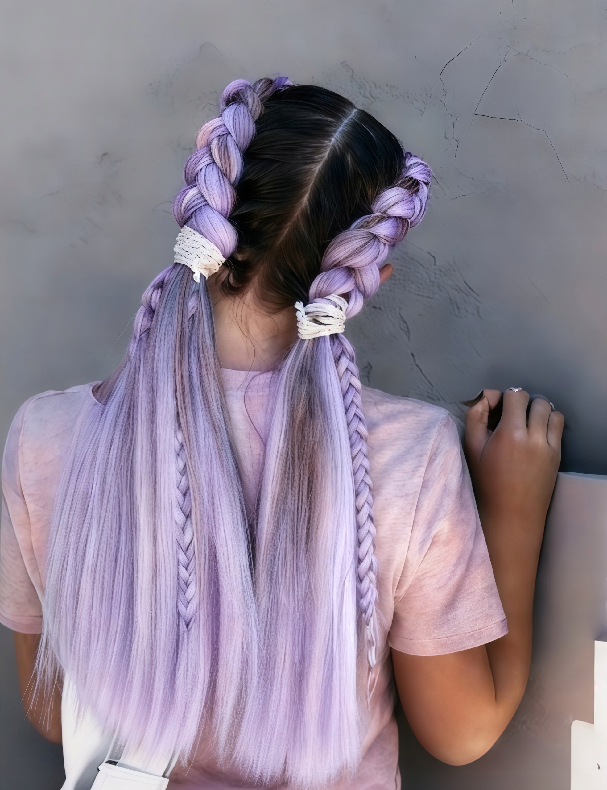 2 шт. Охотники на демонов Kpop Руми Парик с хвостом и косой для косплея – фиолетовый