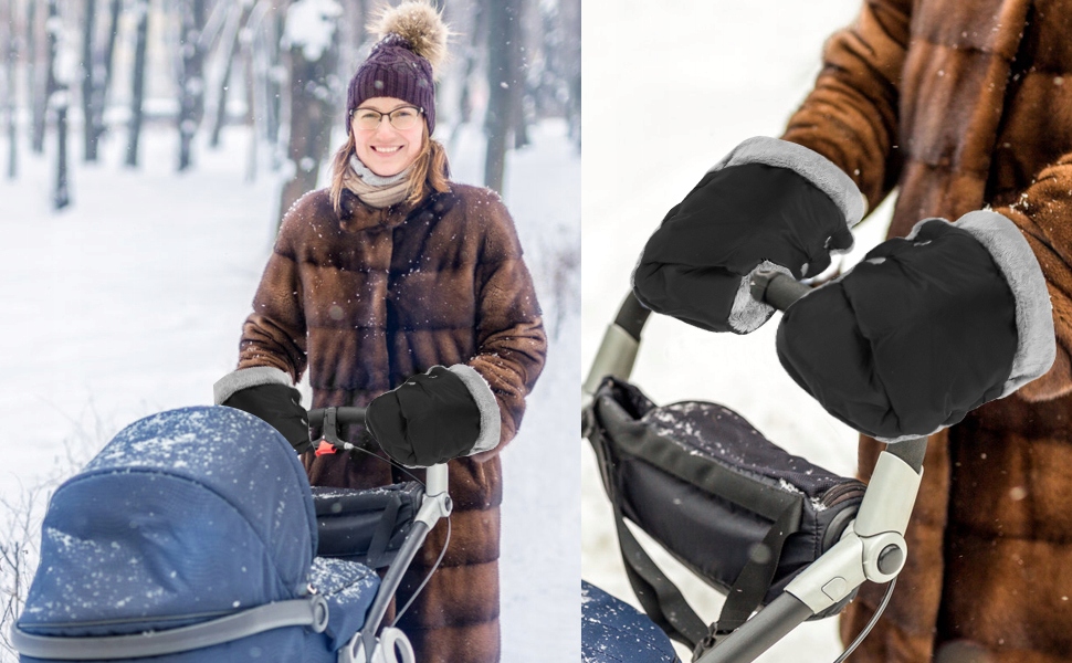 - Перчатки подходят к любой стандартной коляске. Они крепятся к ручке с помощью защелок. Просто просуньте руки и подтолкните его. Наконец-то согрейте руки даже в холодную погоду.