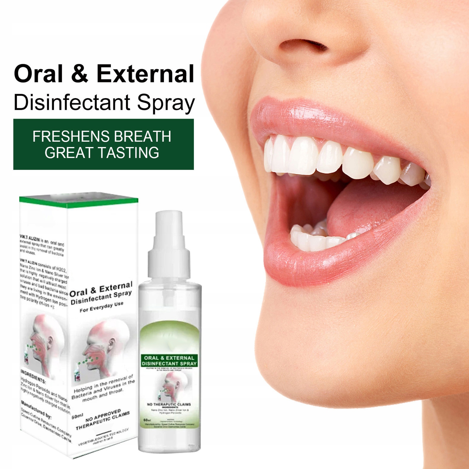 2. ОЧИСТКА РТА: спрей для полости рта, предназначенный для очистки рта и горла, предотвращения неприятного запаха изо рта и улучшения здоровья полости рта.