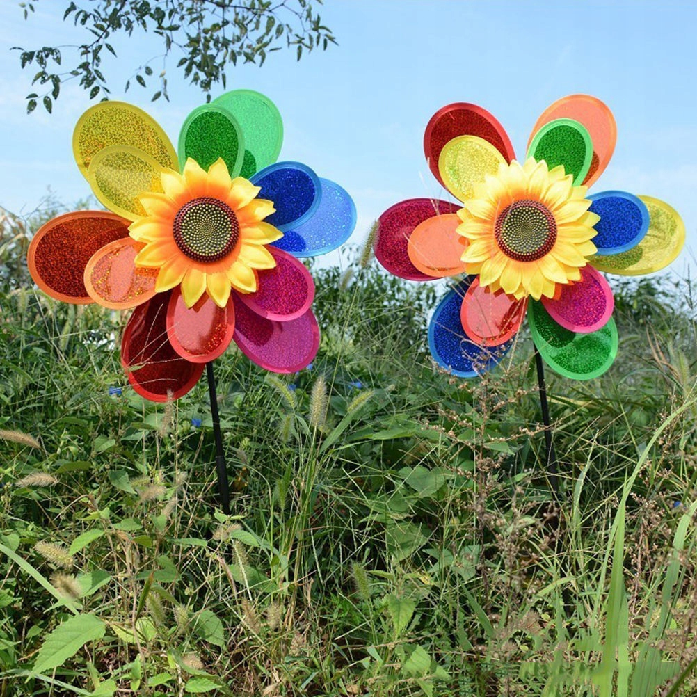 ✅Эта ветряная мельница имеет вид двухслойного подсолнуха, очень красочный и изысканный. Изготовлен из пластика, безопасен для игр детей. Благодаря красивому цвету и отличному качеству изготовления, это хороший выбор в качестве подарка для вашего ребенка, он ему обязательно понравится. Это также отличное украшение вашего дома, двора, сада и т. д.