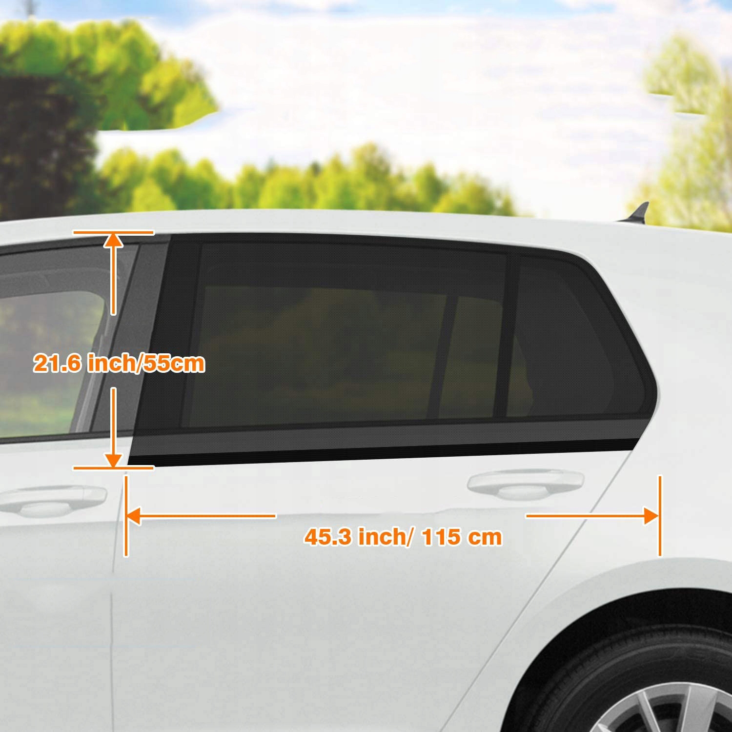🚗🚗 Подходит для большинства автомобилей: Зонты изготовлены из очень эластичного сетчатого материала, который легко растягивается. Подходит для большинства автомобилей, включая большинство седанов малого и среднего размера, внедорожников и пикапов. Размер этого навеса до 115 см (Д) на 55 см (В). Перед покупкой измерьте размер заднего бокового стекла вашего автомобиля.