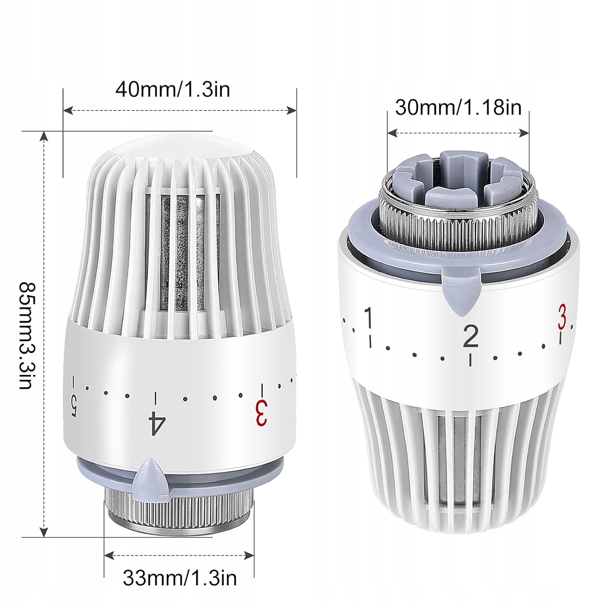 В комплект входят 2 радиаторных термостата с резьбовыми соединениями M30 x 1,5 мм и подходят для резьбовых соединений M30 x 1,5 мм от производителей радиаторов. Перед покупкой проверьте, подходит ли эта термостатическая головка для вашего клапана. В комплекте только голова. Эти клапаны можно использовать в полотенцесушителях, колонных радиаторах, панельных радиаторах центрального отопления и вертикальных плоских радиаторах.