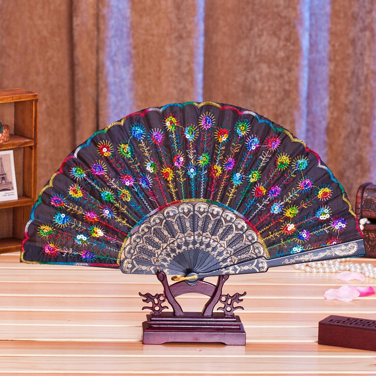 2 шт. РУЧНЫЕ ТАНЦЕВАЛЬНЫЕ ВЕЕРА С БАЙЕТКАМИ, УНИКАЛЬНЫЕ ЦВЕТНЫЕ ЦВЕТА
