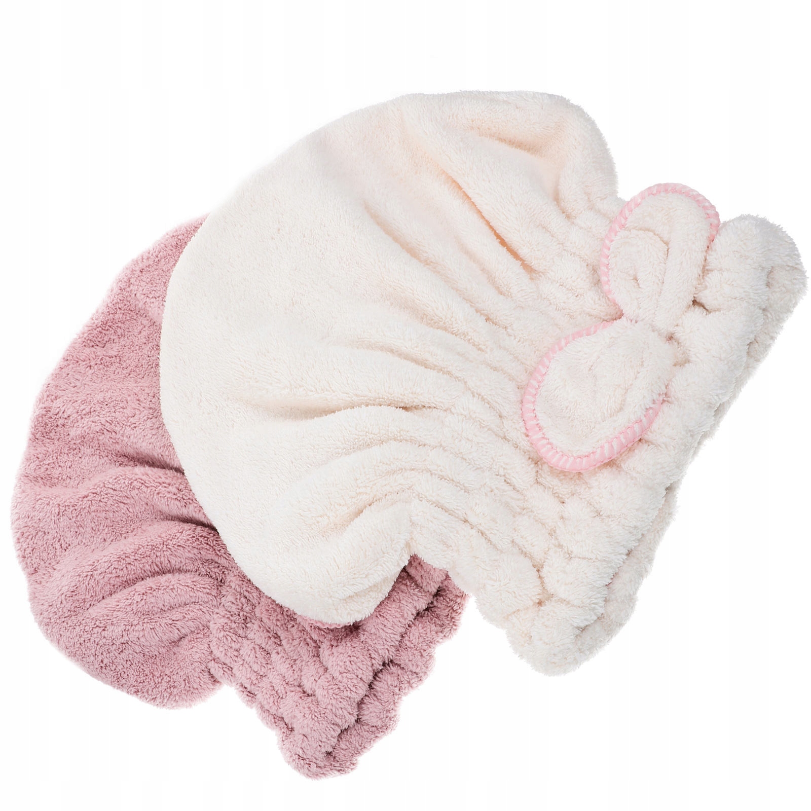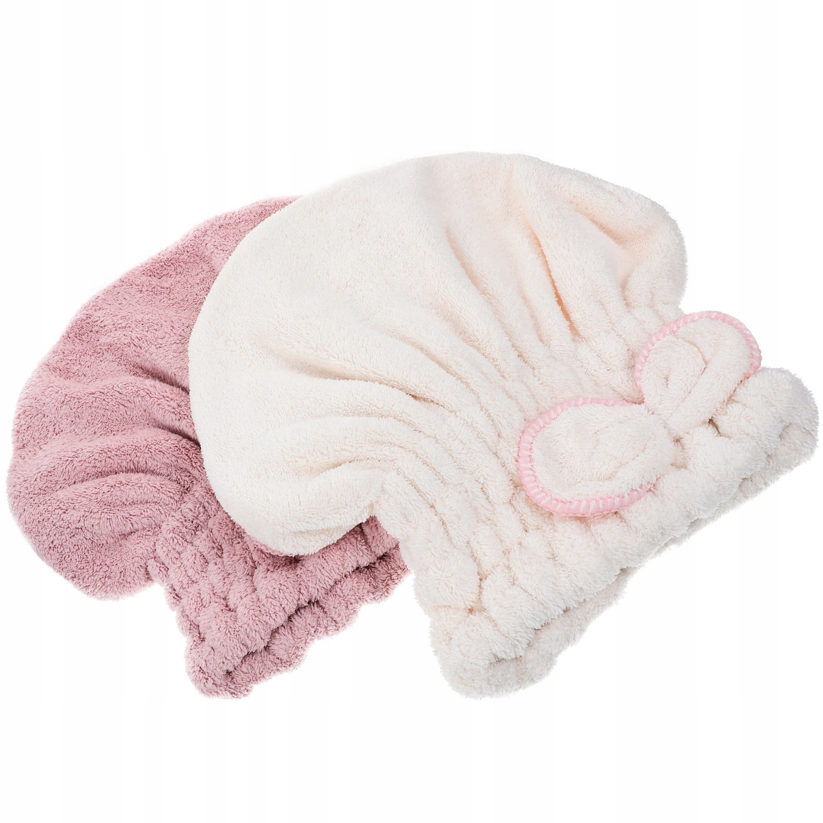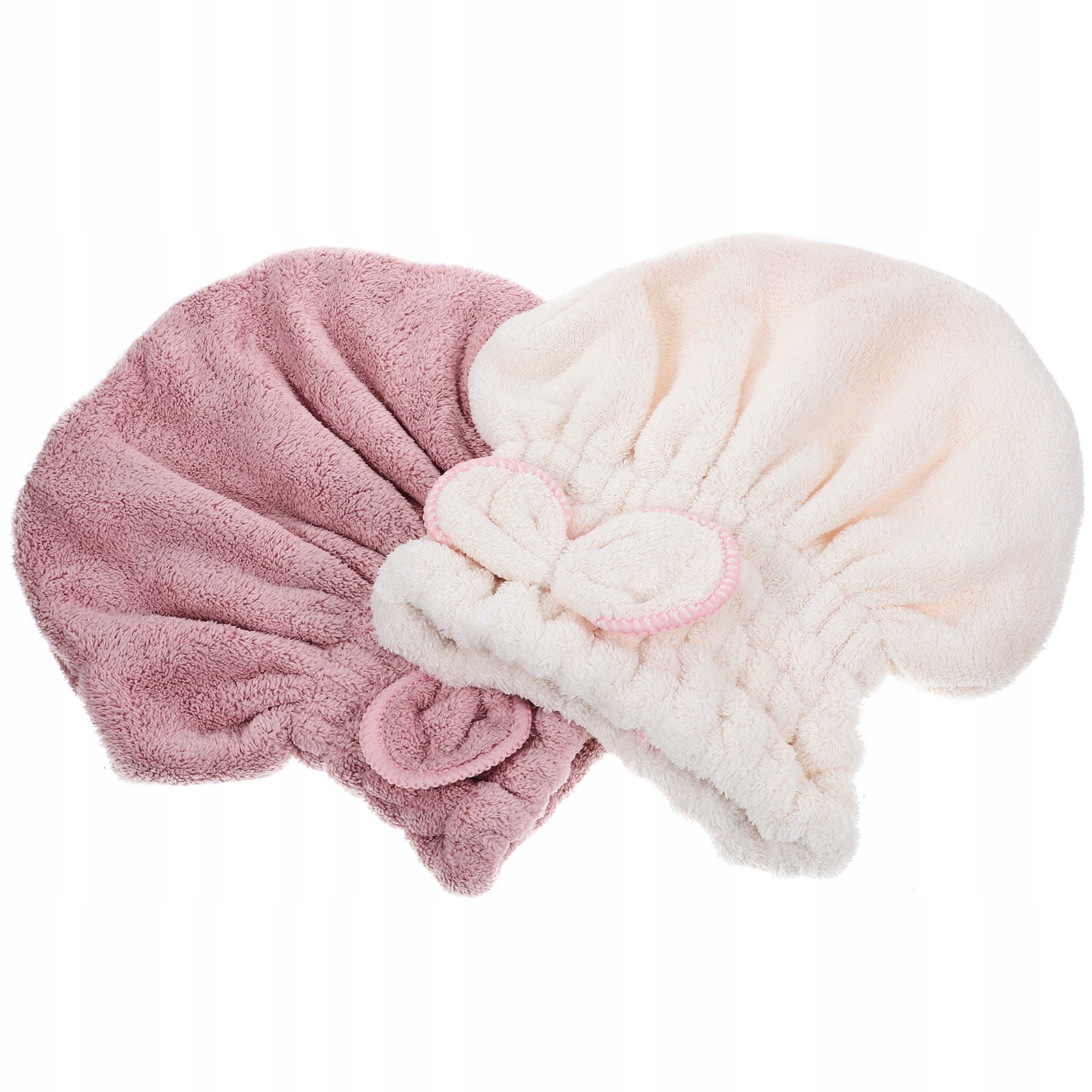 2 шт. шапочки для душа из кораллового флиса с бантиком для сушки волос для утолщенных волос для ванны (розовый)