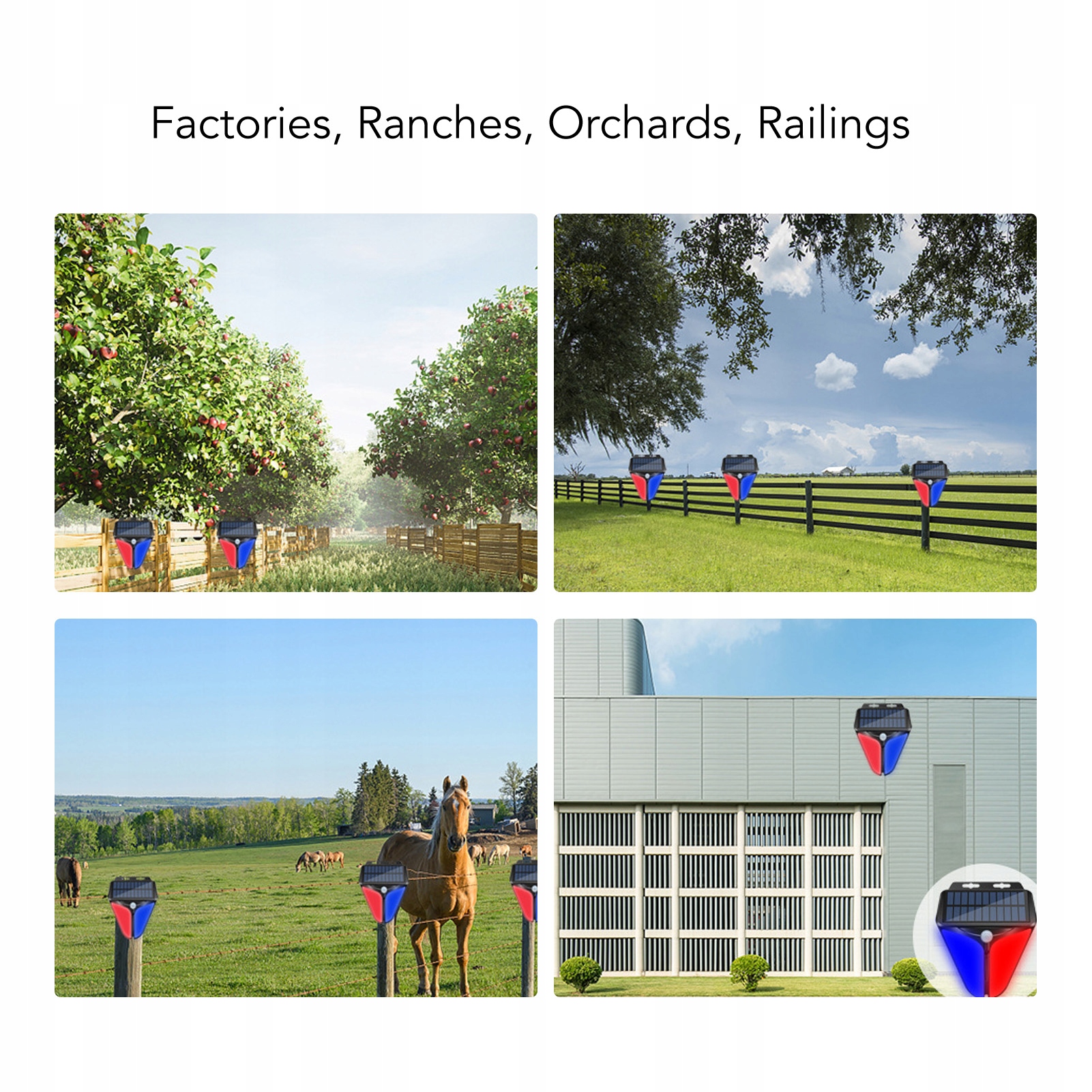5. Более широкое применение: эта солнечная предупреждающая лампа идеально подходит для внешнего использования, например, В парках, рядах, домах, фермах, сараях, виллах, внутренних дворах, заборах, фабриках и других местах, требующих оповещений безопасности. Рекомендуемая высота сборки находится на 3-4 метра над землей.