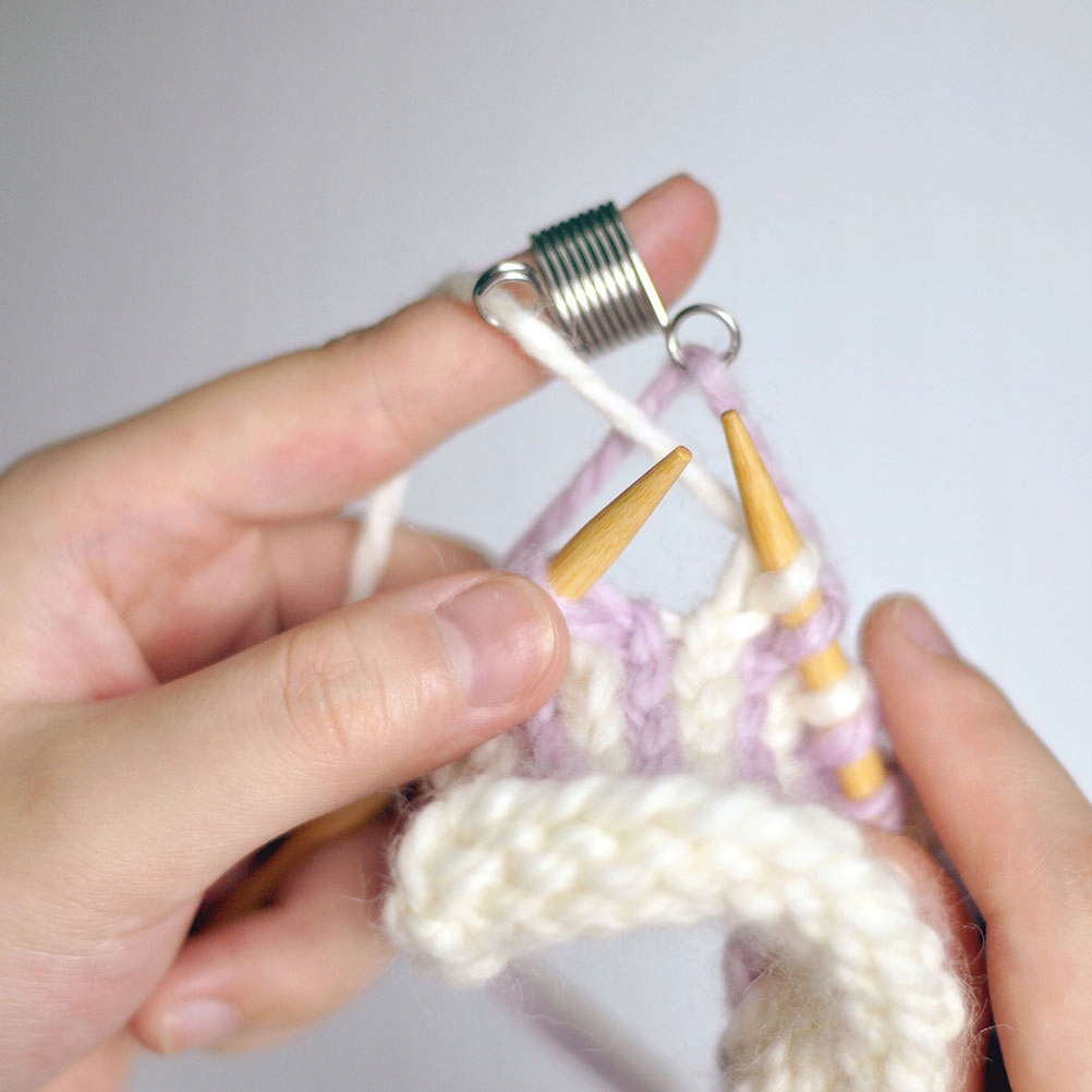 ✅Это свернутое кольцо, которое можно носить на кончике пальца, чтобы удерживать нити и поддерживать равномерное натяжение.