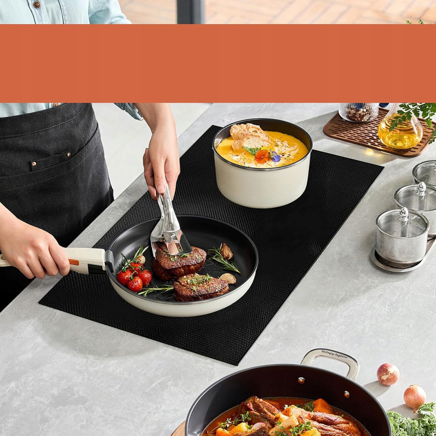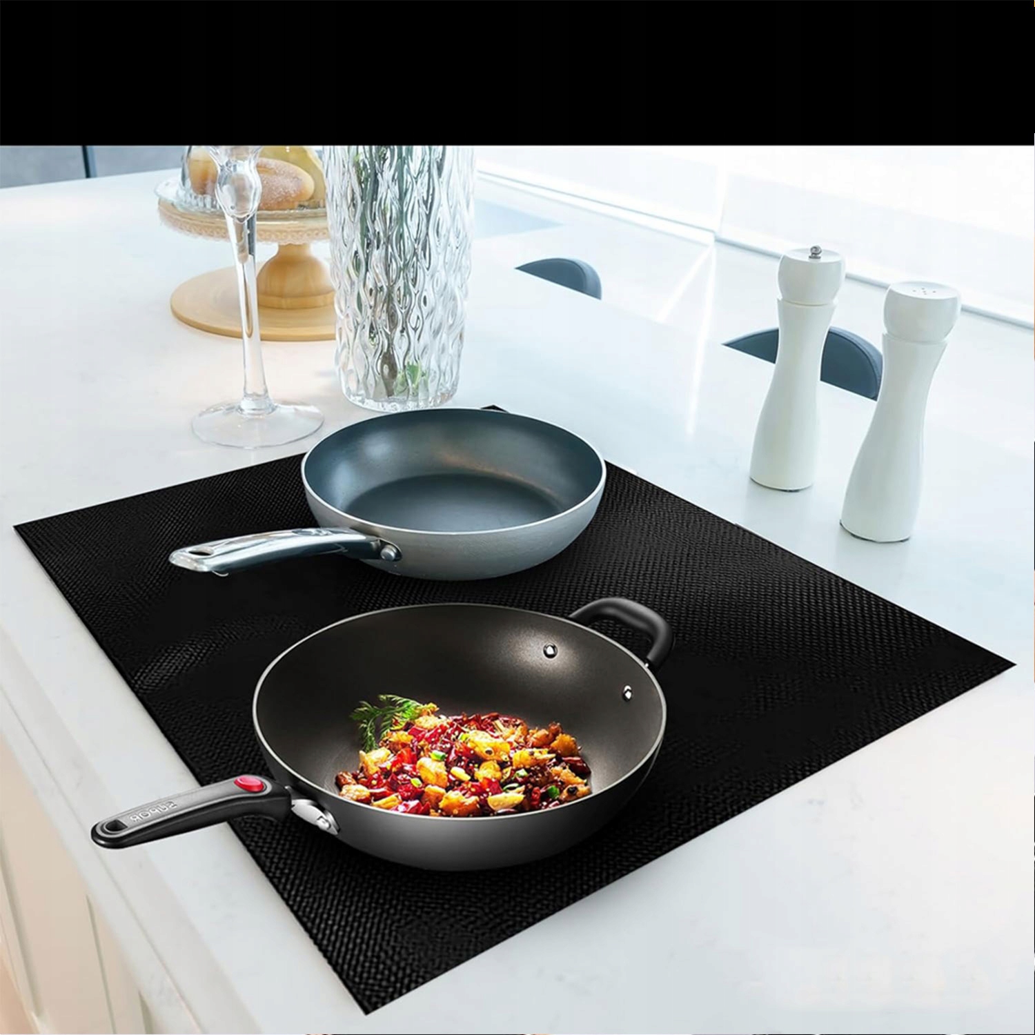 2 [ЗАЩИТА КУХОННОЙ ПОСУДА]Коврик защищает индукционную плиту от пятен и царапин, а также брызг, царапин, жира и других поверхностей на кухонных столешницах. и другие поверхности. Коврик многоразовый, огнестойкий и термостойкий.