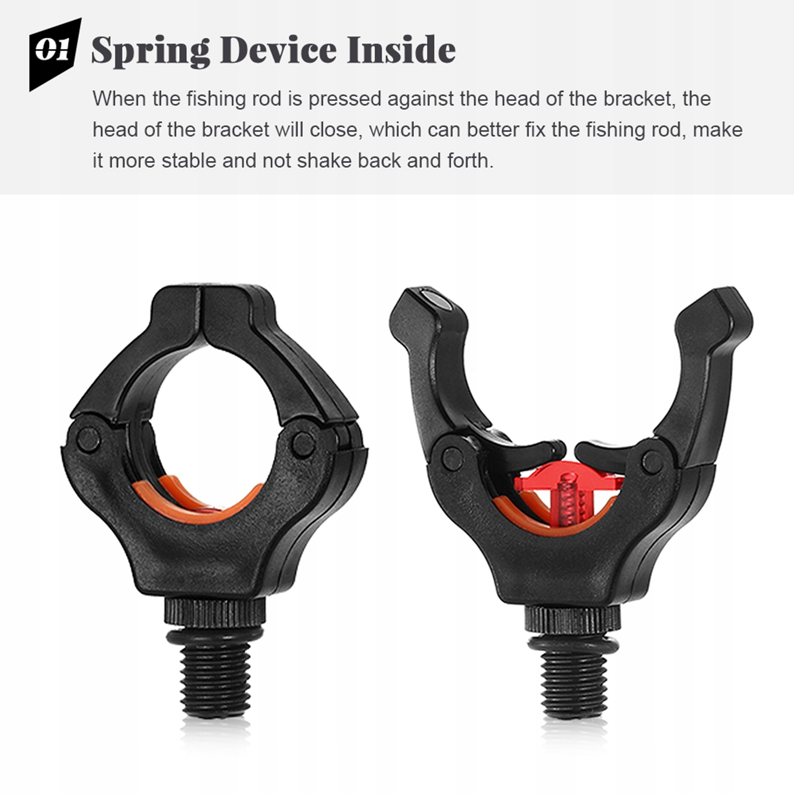 1. Встроенное пружинное устройство: когда удочка прижимается к опорной головке, опорная головка приближается, чтобы лучше зафиксировать удочку.