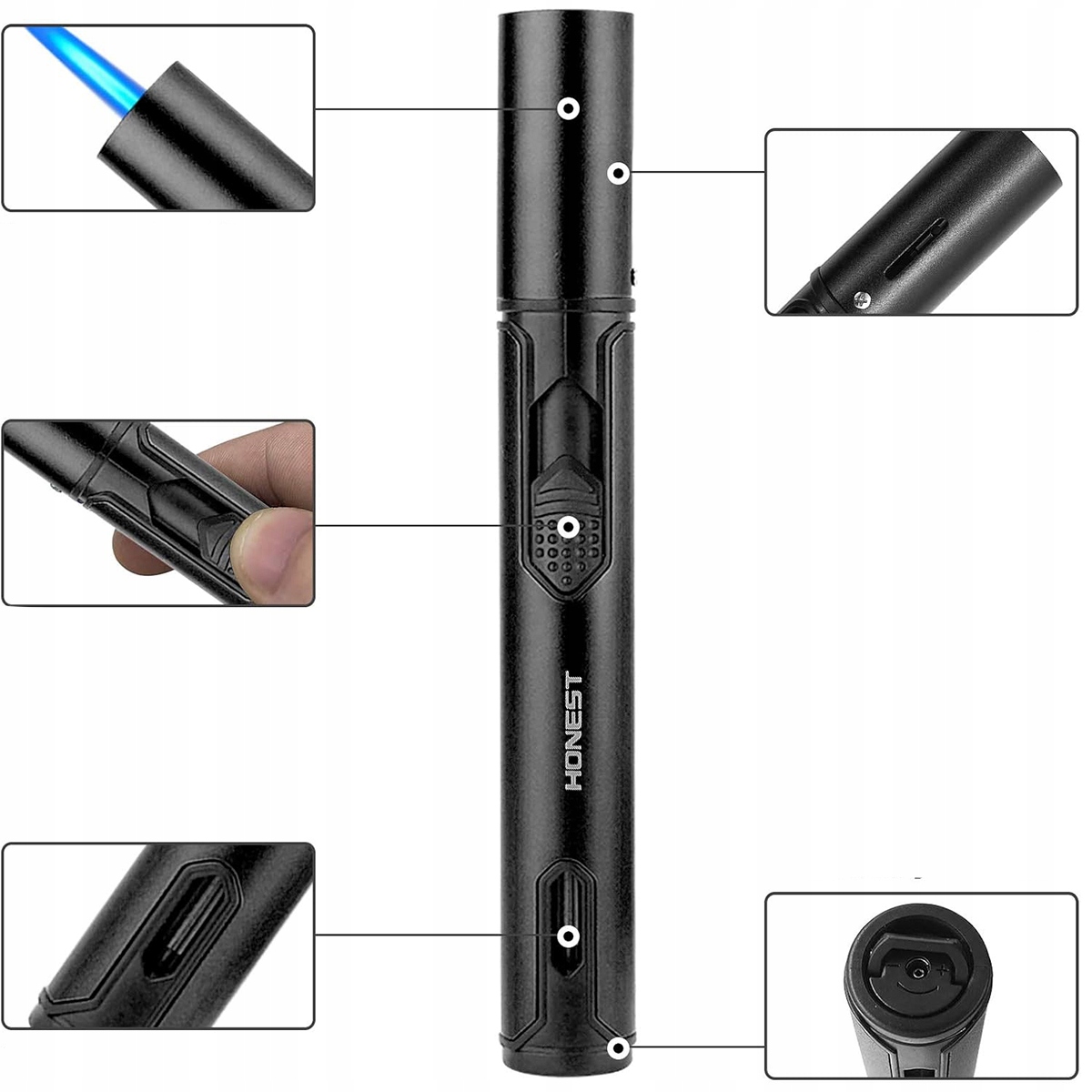 ✅【Регулируемое пламя, видимое топливо】Газовая зажигалка HONEST имеет емкость 2,8 г газа (газ не входит в комплект), что обеспечивает длительный срок службы. Клапан регулировки пламени расположен в нижней части зажигалки. Вы можете легко отрегулировать размер пламени без инструментов. Наша зажигалка также имеет видимое окошко для топлива. Встряхните зажигалку, чтобы увидеть, сколько топлива осталось через видимое окошко, а также проверьте и долейте бутан в любое время.