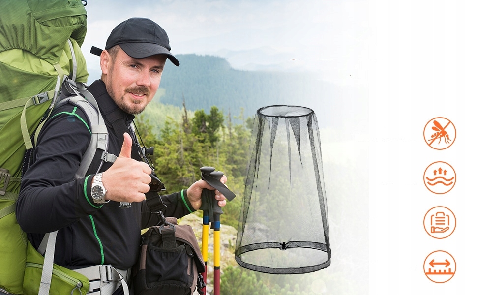 Эргономически разработанная сеть комаров обеспечивает полную защиту лица, лба и шеи перед комарами, мухами и другими насекомыми. Идеальная длина и ширина обеспечивают сопоставление для большинства пользователей .