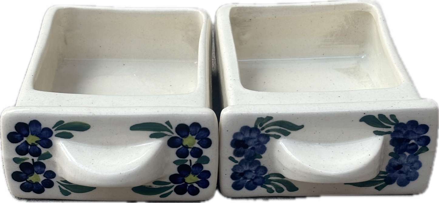 Шесть фаянсовых ящиков из Влоцлавека 1970-х и 1980-х годов. Подписано. Ручная роспись г-жи Рыбацкой. Выкройка 1455. Художественные размеры; высота 4,5 х 9 х 12 см. Незначительные производственные дефекты эмали, незначительные следы использования. Состояние показано на фотографиях.