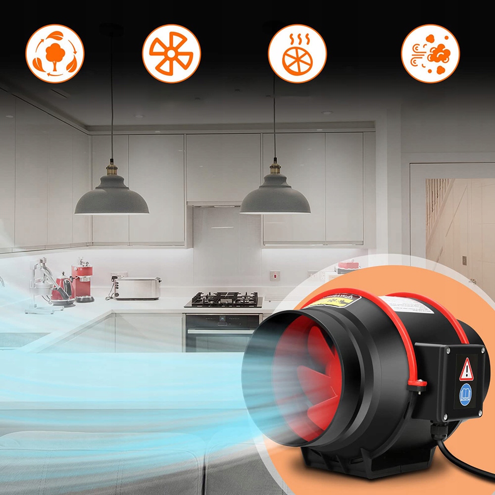 ▲Универсальное применение: Канальные вентиляторы для вентиляции и очистки воздуха в промышленности, домашнем хозяйстве и садоводстве. Вытяжные вентиляторы для ванных комнат, мастерских, кухонь, подвалов, теплиц, палаток и т. д.