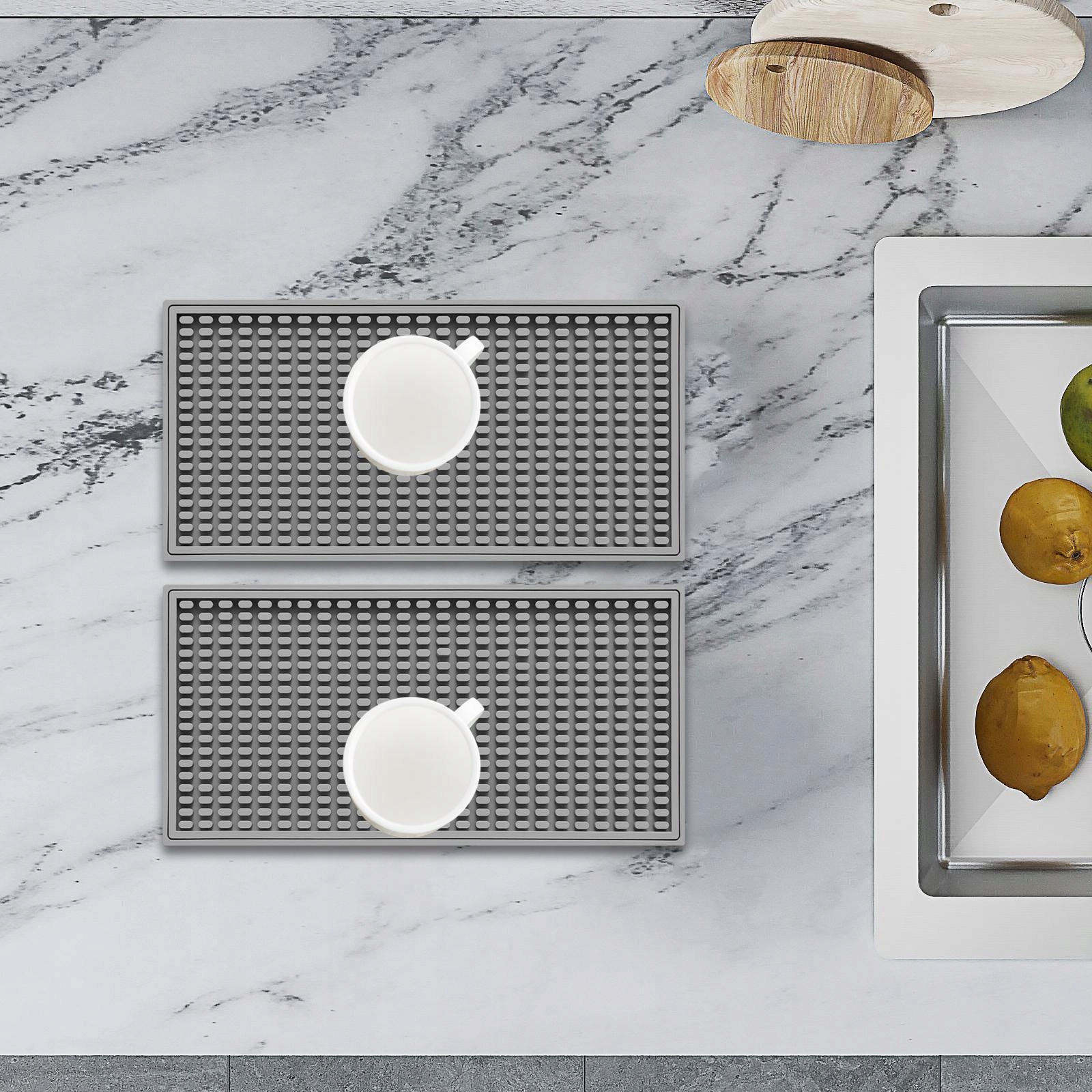 2x силиконовый коврик для бара. Противоскользящий кофейный коврик для столешницы в стиле кантри. Бармен, серый
