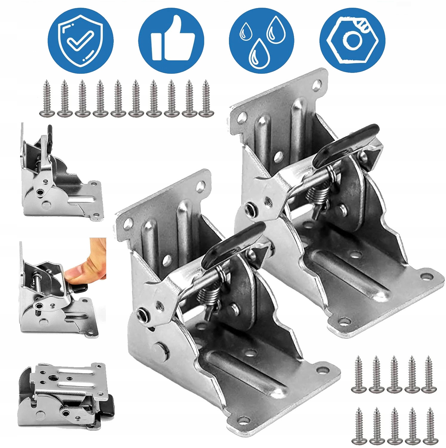 🪧-Складные петли изготовлены из толстого стального листа, высокого качества и долговечны, устойчивы к коррозии и царапинам. Каждый кронштейн выдерживает нагрузку 226 кг.