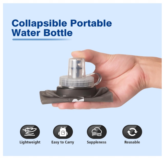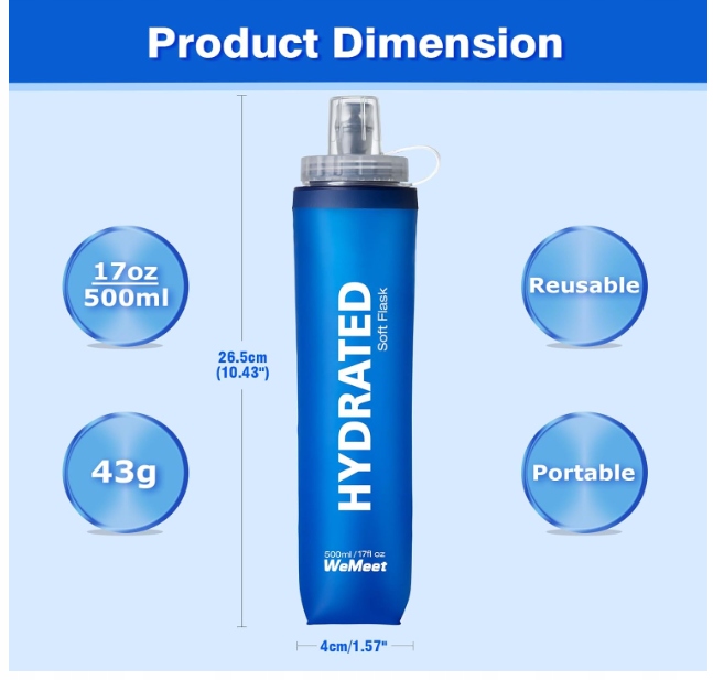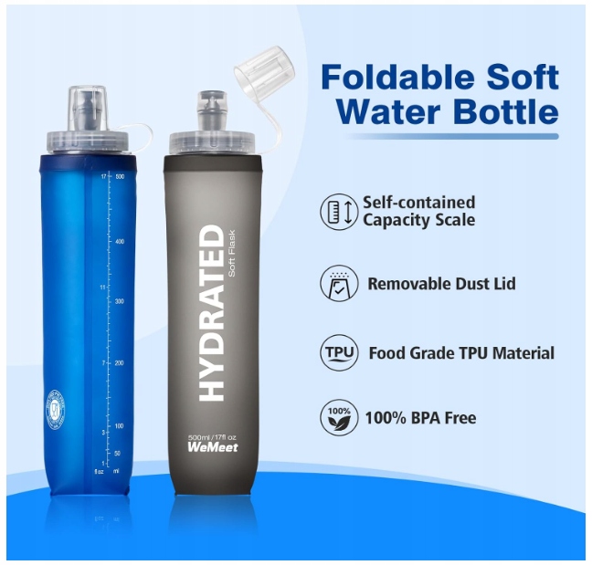 Складная бутылка для воды: складная мягкая бутылка для воды WEMEET весит всего 50 грамм, ее можно сложить после питья воды из бутылки, она не занимает много места, очень легкая и удобна в переноске, подходит для путешествий, кемпинга, походов, марафона, бега и других видов спорта, это идеальный выбор для активного отдыха.