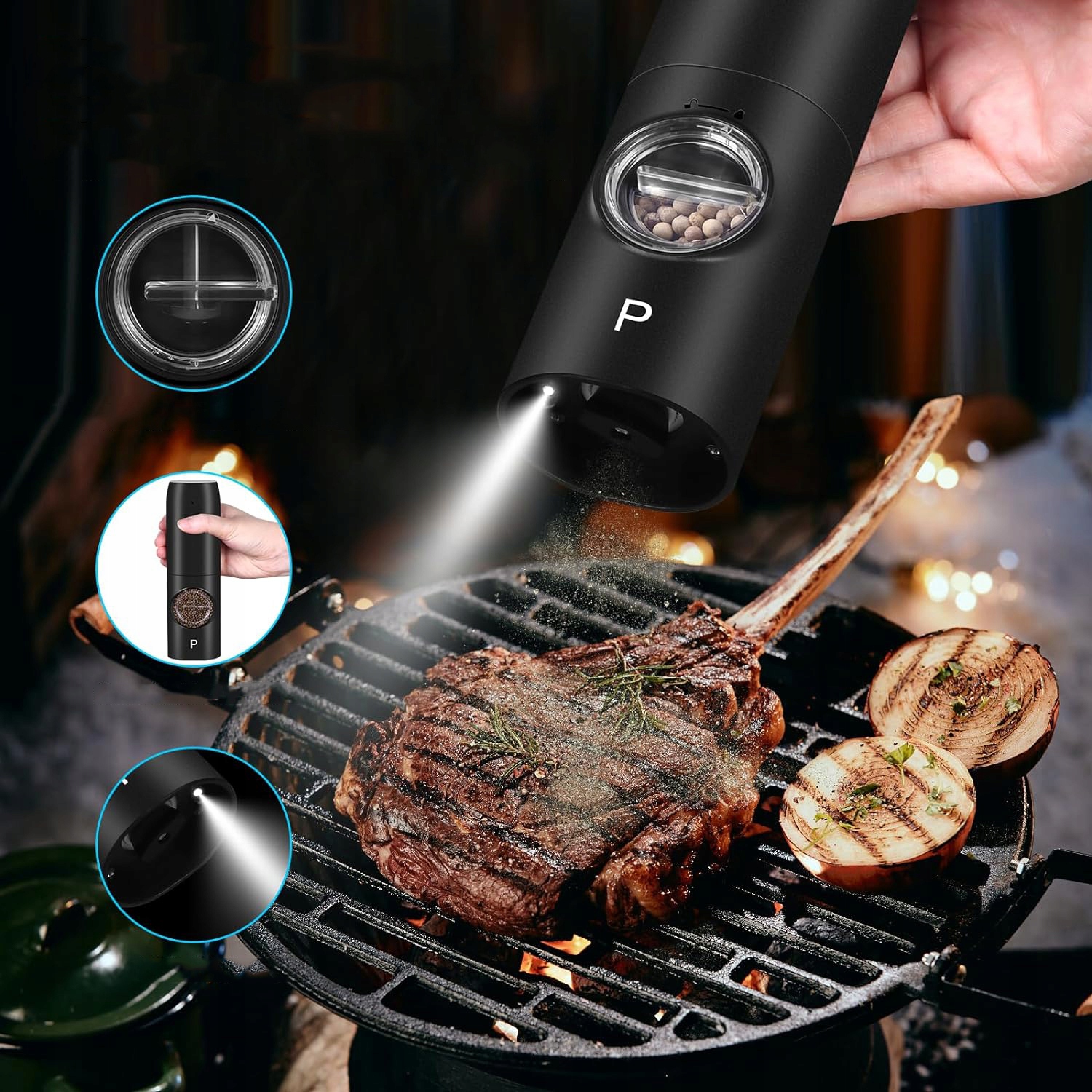 ✔ ✔ 【【Широко подходит для большинства кухонных специй】 благодаря большому и прочному сердечнику (консерванту), этот электрический перцем также может измельчить соль и другие сухие травы, благодаря которому это многофункциональный инструмент. Шначатка обеспечивает больше ровного измельчения, и в то же время является более универсальным, чем металлические измельчители.
