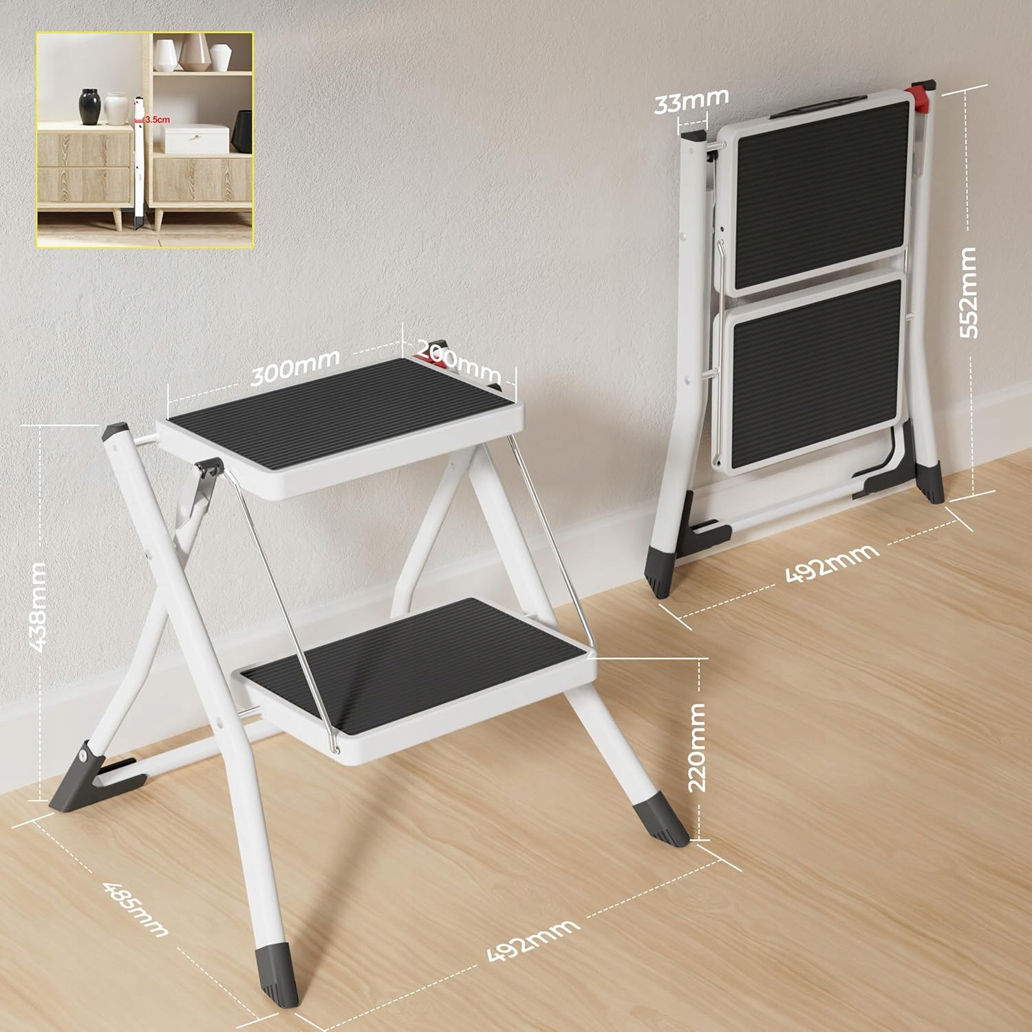 【Anti -Slip Design】 Лестница имеет резиновые крышки на ногах, которые защищают пол от повреждения, обеспечивая стабильность и дополнительную безопасность во время использования. Широкие коврики с стеблем с размерами 30*20 см и поверхностной поверхности обеспечивают стабильную опору ног. Такие решения снижают риск несчастных случаев