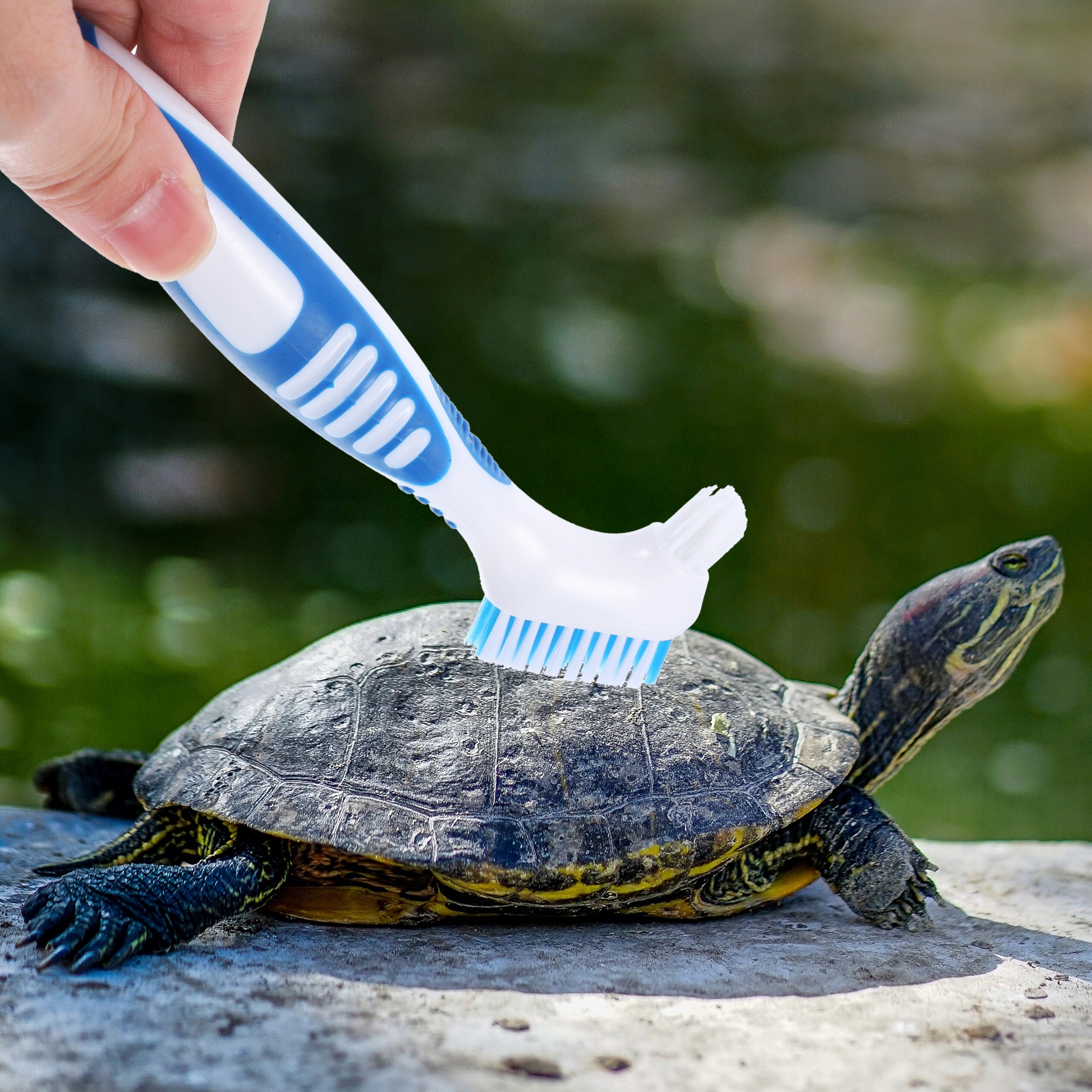 ✅ Широкая головка щетки подходит для очистки больших поверхностей панциря, а узкая сторона подходит для чистки щелей в панцире черепахи.
