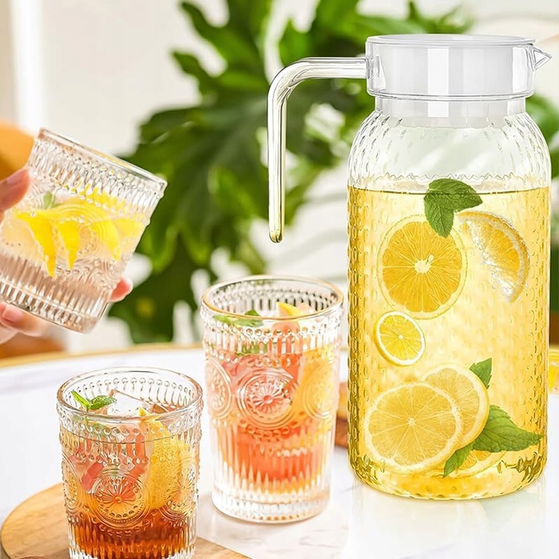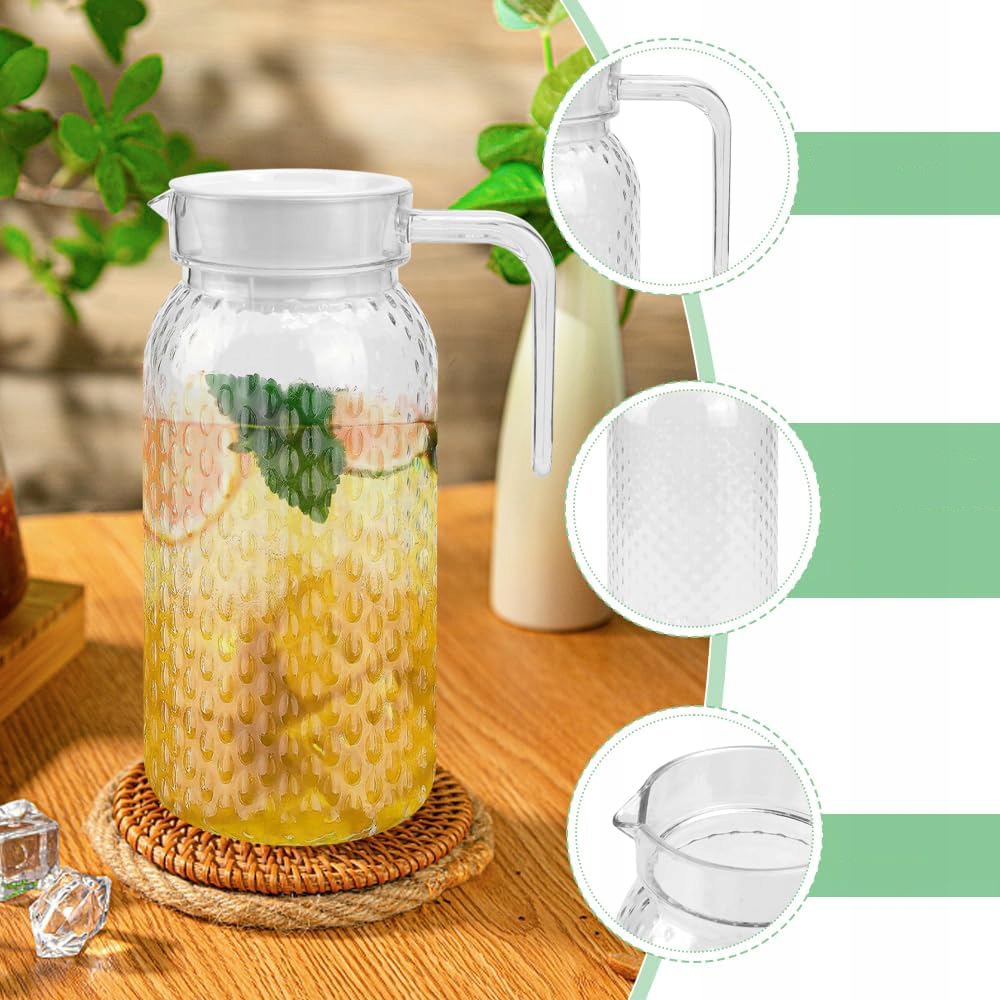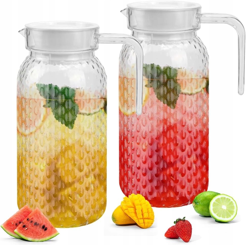 2 SZTUKI 1L PRZEZROCZYSTY DZBANEK NA WODĘ, KARAFKA NAPOJÓW, SOKÓW Z POKRYWĄ