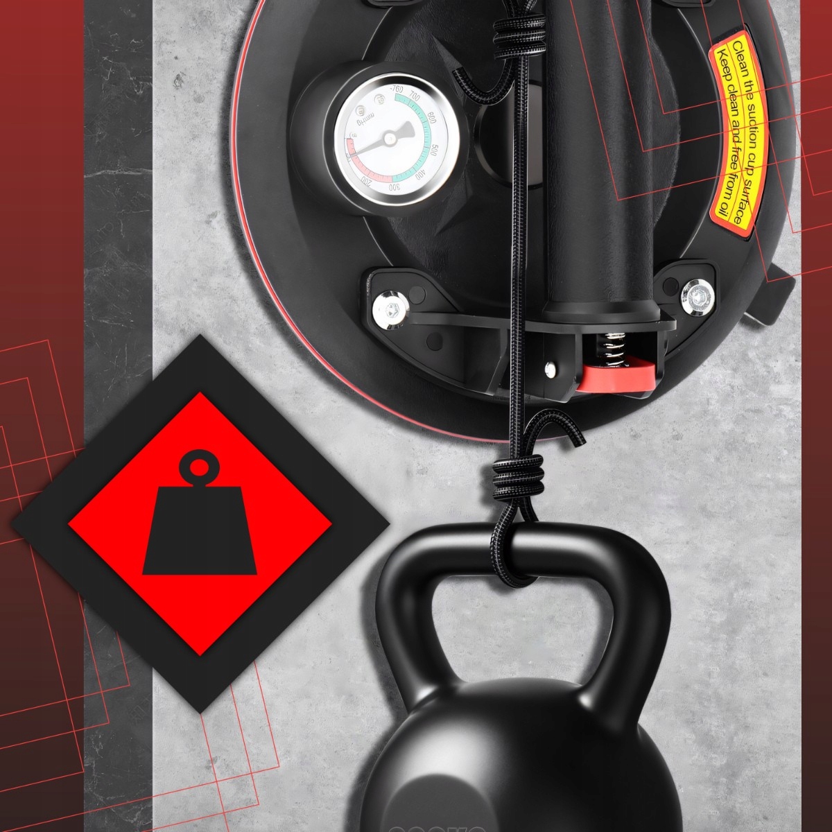 ☝️МАНОМЕТР: Манометр позволяет точно проверить силу всасывания, поэтому вы можете быть уверены, что присоска надежно удерживает вес, до 220 кг.