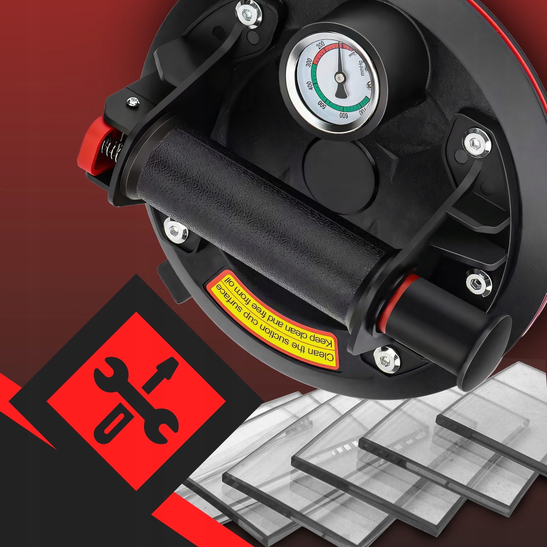 Присоска для плитки, кафеля и стекла с насосом и манометром обеспечивает максимальную безопасность при работе с тяжелыми предметами, такими как стекло или плитка.